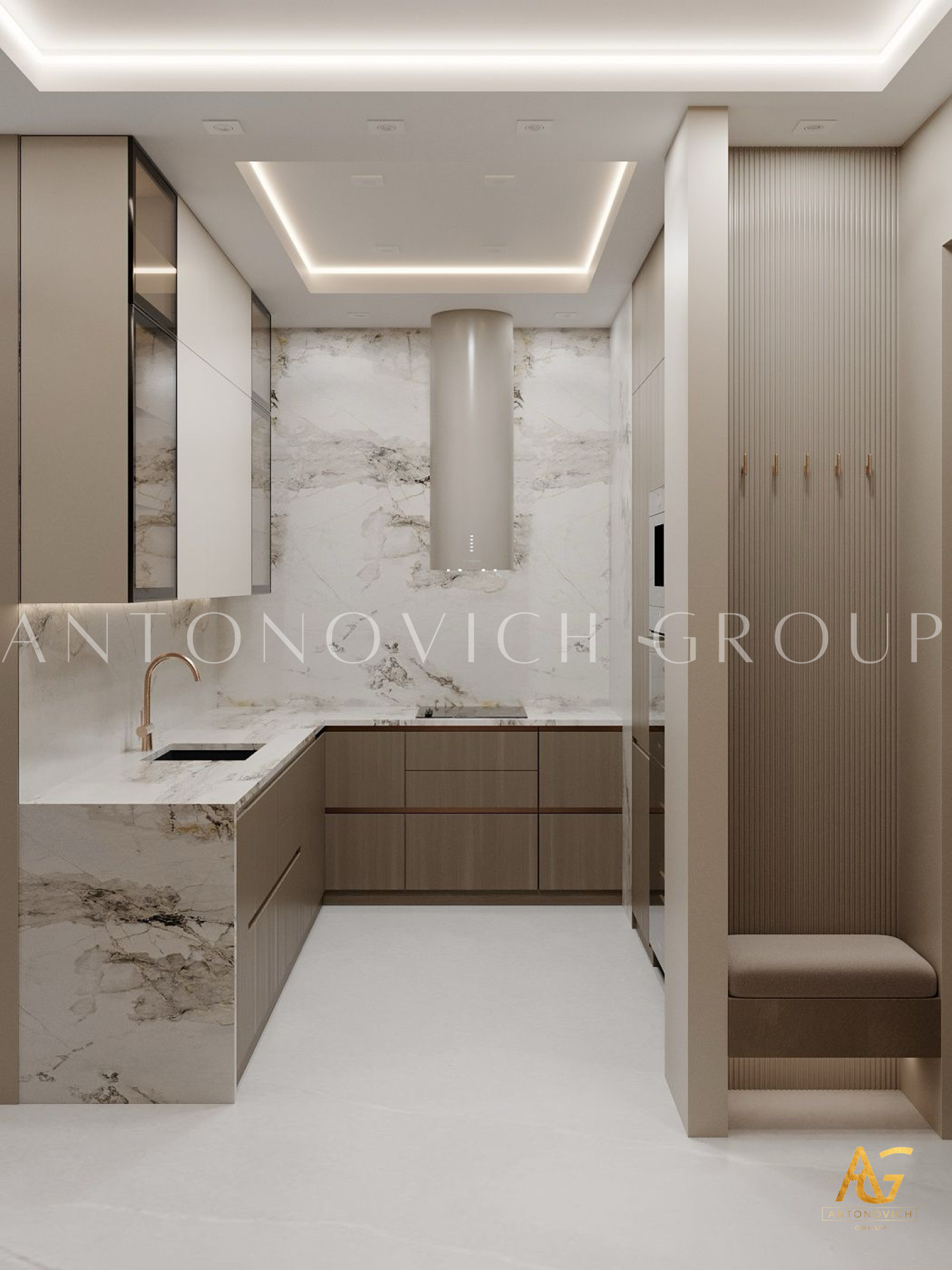 Flat design Dubai in a classical style reflecting the elegance and gentility of its owners. Each project of talented interior designers from studio Luxury Antonovich Design gets its own special charm, special character. In accordance with the traditions in the flat the hall, living room, dining room and kitchen are combined. A small part of the dividing wall separates the living and dining rooms. Flat design Dubai is amazing elegant and luxurious. Harmony and elegance are inherent in every square meter. The interior design UAE, which is offered by our studio reflects the luxury of the new millennium. Each interior becomes an object of pride for owners of flats and their ideal habitat. Flat design Dubai very subtly and sensually emphasizes impeccable taste of its owners. The floors are made of natural marble, as always, this is the highlight of every project by luxurious studio. With ceiling decor interior designers Dubai zoned the space. Curls stucco decoration is in the tradition of classical style and luxury surrounded by ornate stained glass chandeliers. Chandeliers in turn define the boundaries of space. As the walls decor there are beautiful art paintings, decorative plaster creamy and graceful pilasters with white stucco capitals. In this delicate cream-colored bright accents of upholstered furniture that is upholstered in velvet noble intense blue hue look amazing. Author's apartment project in Dubai reflects the fact that, even in the space of an apartment, you can create the mood of palatial luxury. The interior is very harmonious curtains оf noble cream-colored silk with wide blue edging look luxurious. Luxurious bedroom design is not less luxurious than the living room interior. But here, as it is inherent to bedrooms, a cozy mood prevails with intimate touch. The atmosphere of warmth of the hearth is here. It is underlined with floor of wood valuable species with special impregnation and an elegant modern fireplace in the middle of the room.