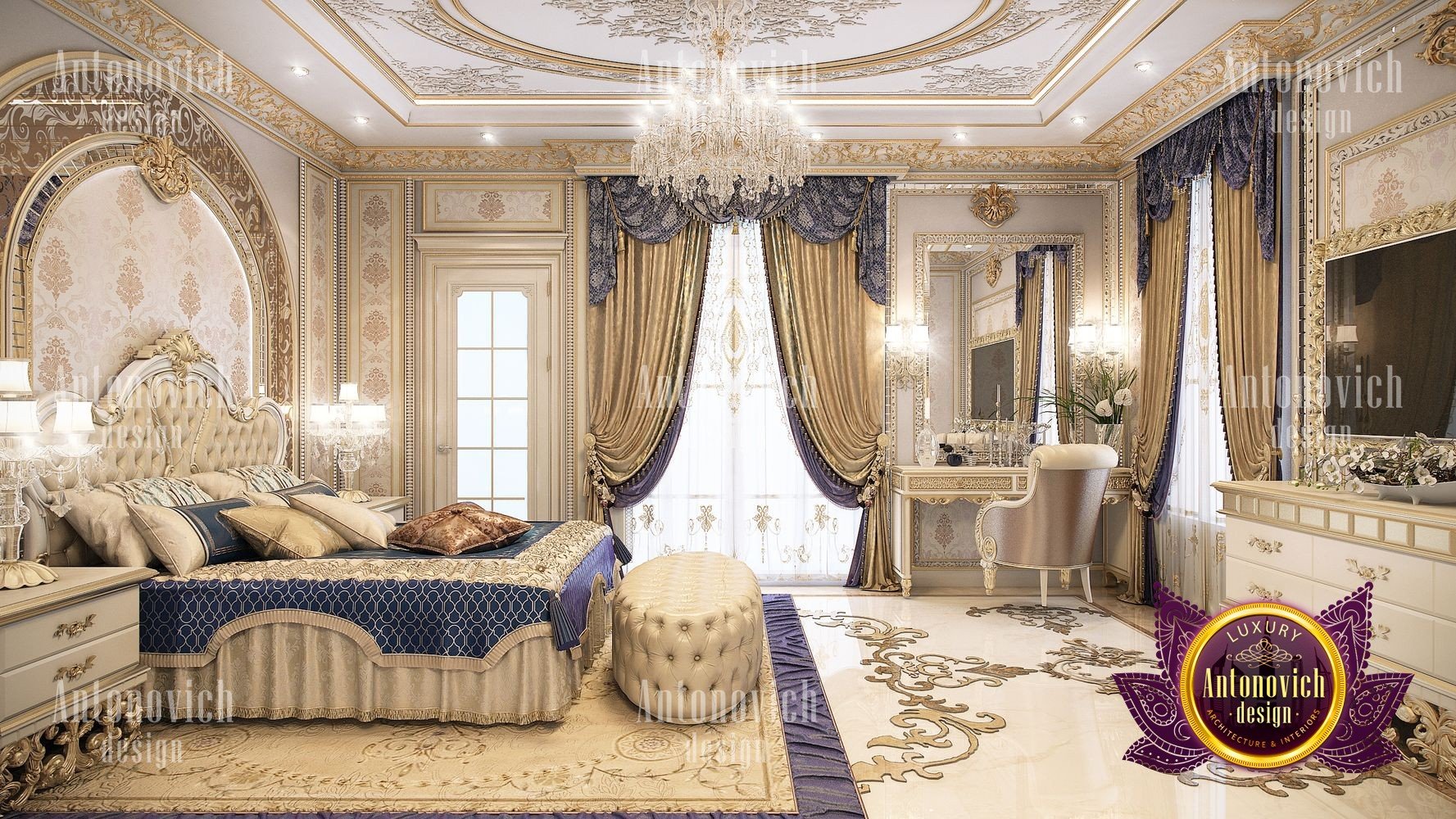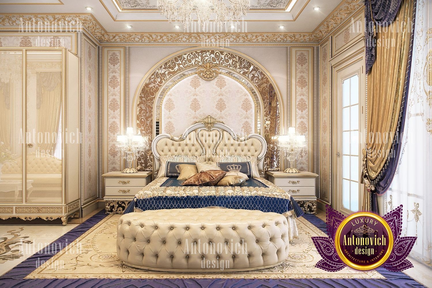 Sometimes it seems that if classic ever come out of fashion, then the world will cease to exist. The classic so ingrained in the interior design and architecture that it is expressing the main trends in any historical epoch. Its like a cornerstone around which other styles developed and change. With this little lyrical digression, we, again and again, want to emphasize the importance of the classic style in interior design and the close attention paid to it by the designers of the Luxury Antonovich Design Studio. In this interior design, the bedroom project everything is beautifully from the pattern on the floor to luxurious curtains. The interior has a very elegant and magnificent charm and at the same time, it remains very elegant and refined. With the help of carefully selected shades of materials for decor and textures, the interior designer creates a unique and very memorable image. In the decor of the ceiling, the tenderness and elegance of the bedroom interior are expressed with the help of beautiful stucco decoration, which is perfectly combined with a traditional crystal chandelier. To make the ceiling more expressive and to separate it from the wall decor, the author uses a wide molding with stucco, which is covered with gilding. A beautiful bed with a high headboard is a single and integral composition with a wall decoration. Luxuriously look silk wallpaper with damask ornaments are visually “enclosed” in an arched frame made of glass with openwork patterns. The magnificent decoration of the windows and beautiful marble floors complete the beautiful image of the interior bedroom in the classic style.