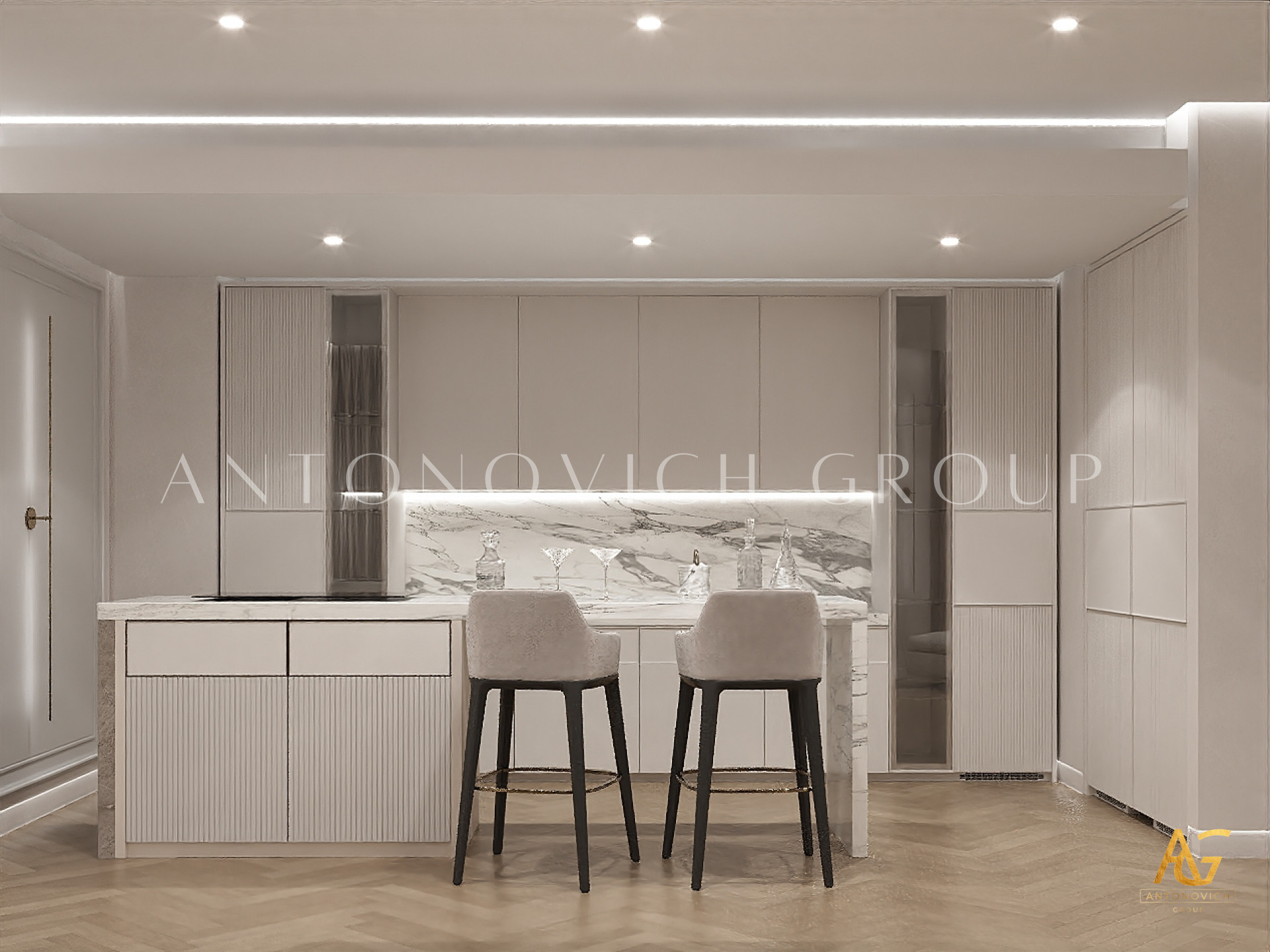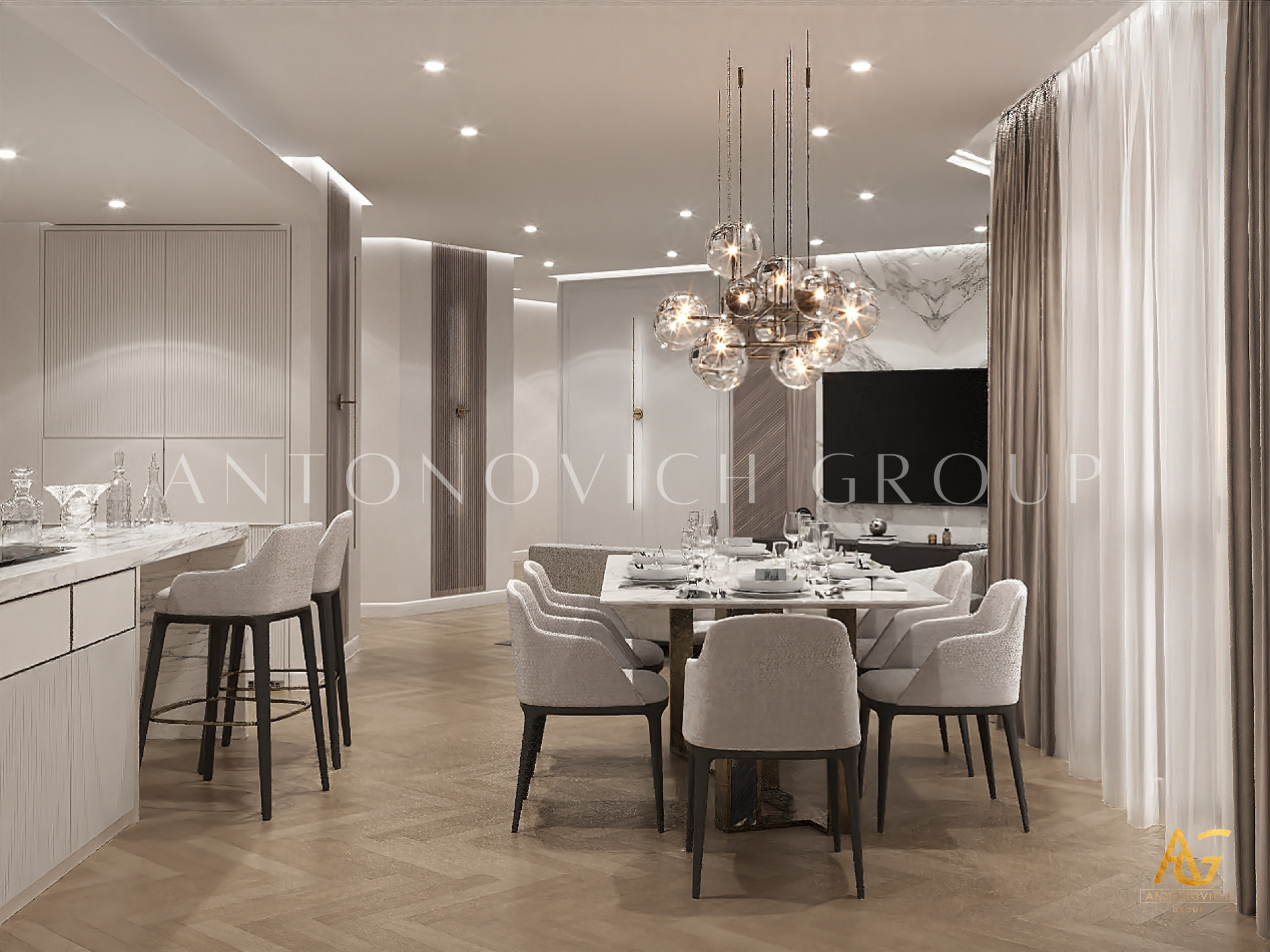 Antonovich Groups finest architects and interior designers have designed a broad variety of magnificent architectural designs and luxury apartment designs for this property. Antonovich Group designed and decorated this modern opulent home design in a modern minimalist setup.