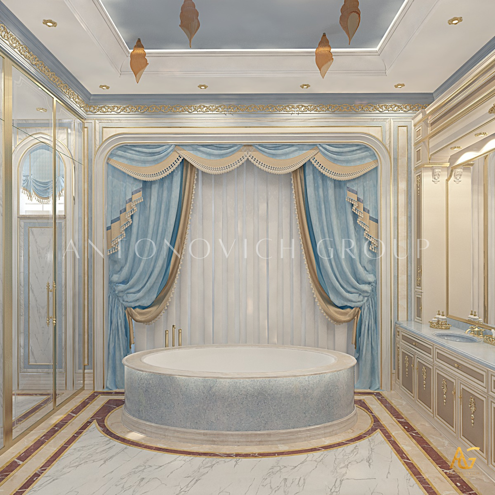 Uganda Luxury Villa Design is the original interior, bright and beautiful in its individual features. Professionals of global renown of Luxury Antonovich Design are developing a range of unusual and creative ideas and also the arts, who are ready to implement it with all the responsibility. Home plans in Uganda impresses with its ideal and unique beauty. Uganda Luxury Villa Design gratifies with the variety of interesting decor elements and the delicacy of every detail. The pastel color was taken as a basis and gives the interior a special harmony and lightness, and such colors as burgundy and gold make their own integral zest. Such shades not only fill your home with sunlight and comfort, but also give the great associations. House design plan in Uganda emphasizes the cascading chandelier with lots of crystal pendants. With such an expensive and elegant lighting, the room are playing with new colors and new shades. As for the furniture, the main criteria here are the real materials. The textiles of the upholstery speaks about the good taste of the house-owner and glares with its brightness and gayness. When we talk about the stairs, which is framed with gold filling pieces and beaten ornaments, so this masterpiece impresses truly. Architectural plans in Uganda - is the unique interior designs that are never repeated among themselves (even in parts). Luxury Antonovich Design offers only the modern and original solutions. Modern house plans in Uganda, it is exclusivity in everything. Your home will be certainly more comfortable and unusual. By the example of Uganda Luxury Villa Design you can see how the lines and geometric ornaments of floor covering are subtle. This image enhances the space, making it more open. Uganda house plans is an incredible combination of splendor and hospitality.