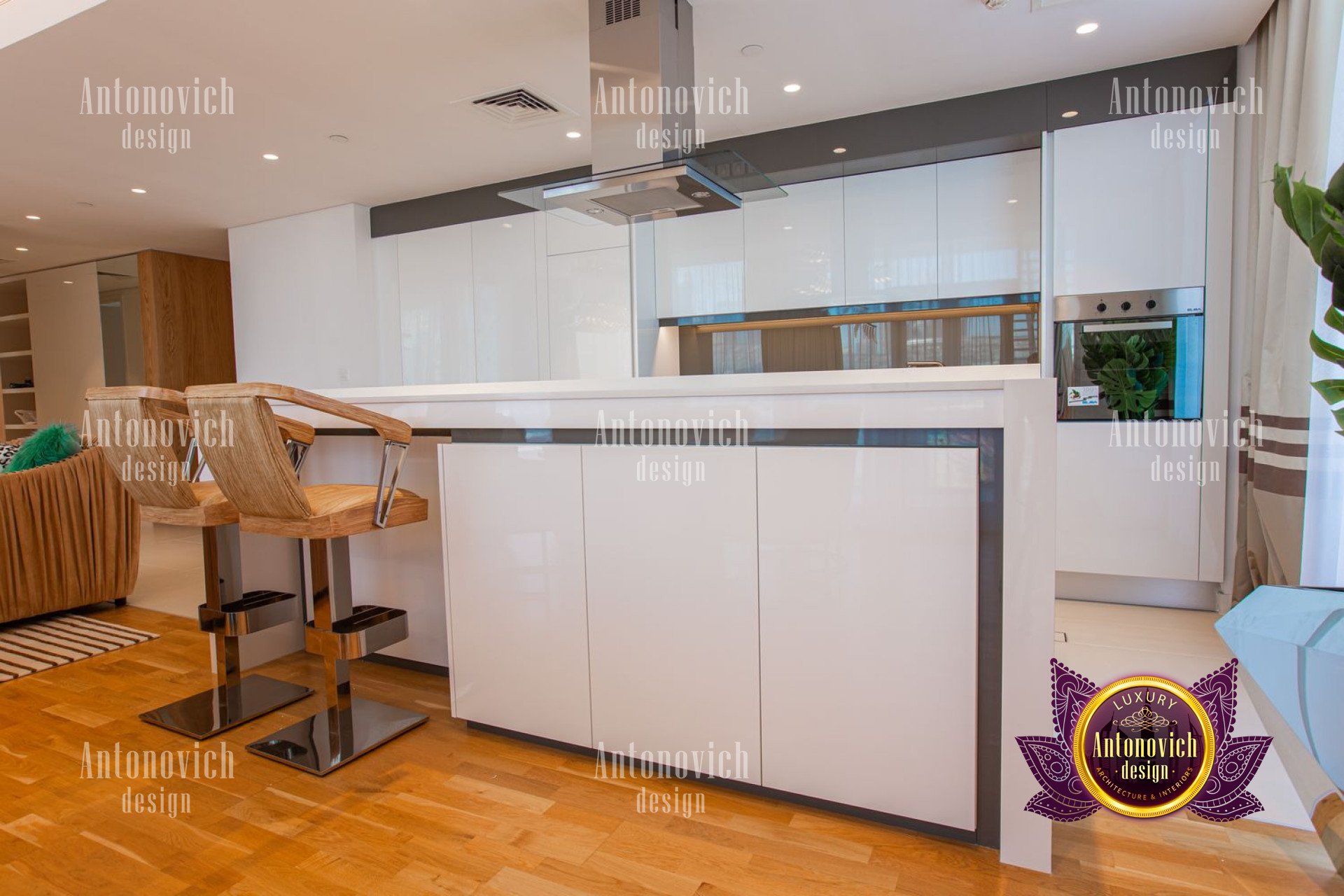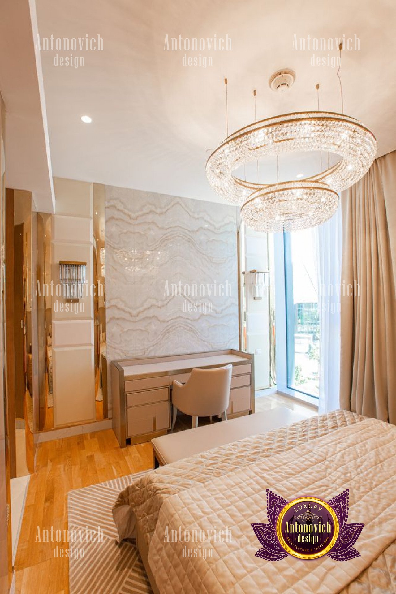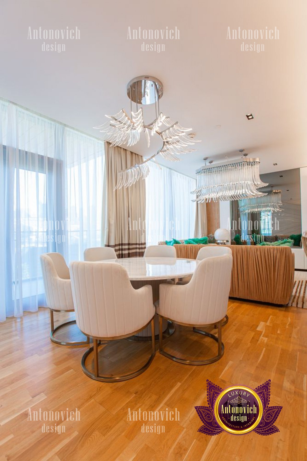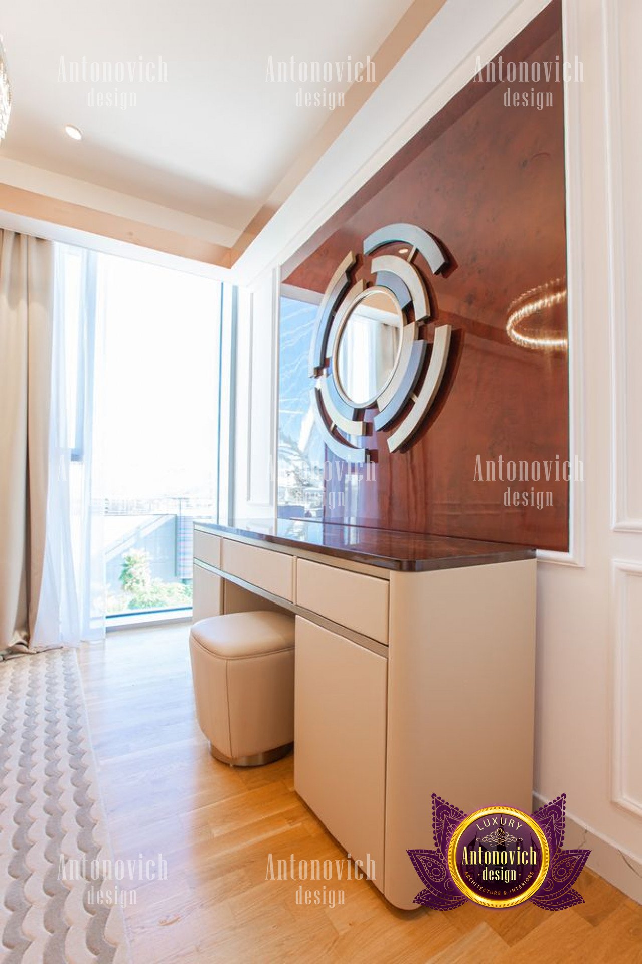 Orange and teal are always a good color combination for interior design. They give such a powerful yet calming ambiance to the room. In this beautiful apartment in Dubai Blue Waters, Luxury Antonovich Design has utilized the beauty of orange and teal. They go well with each other and their style is undeniably beautiful. The beautiful sofa is partnered with an equally gorgeous throw pillow.