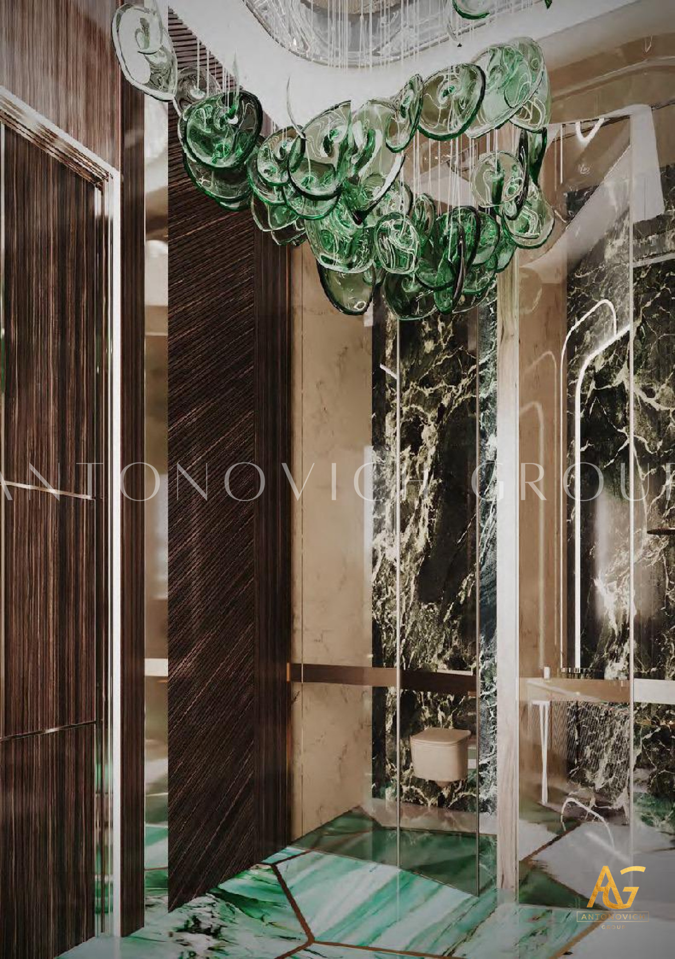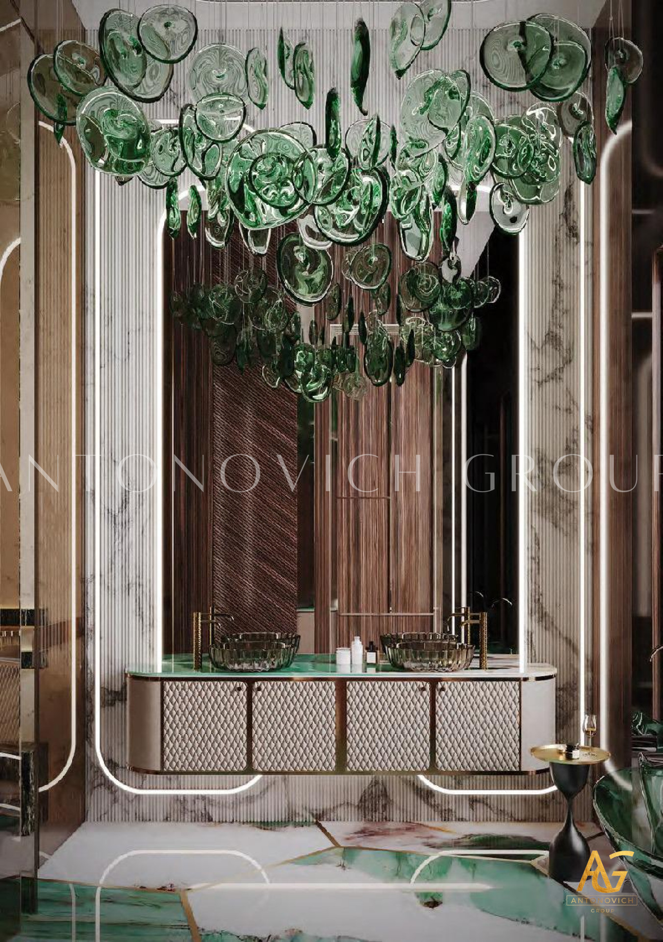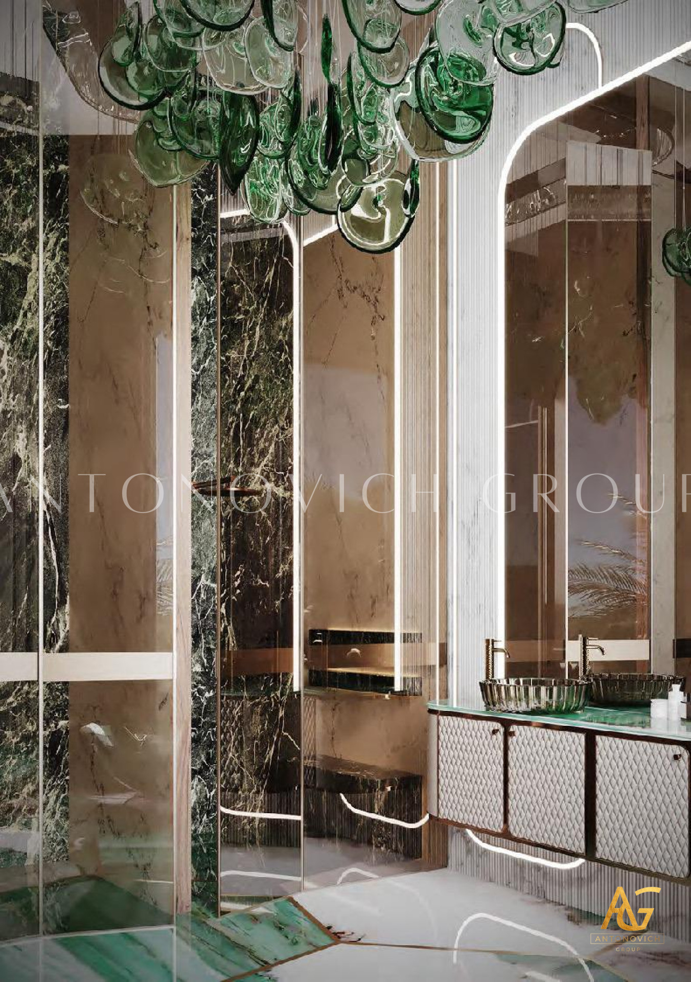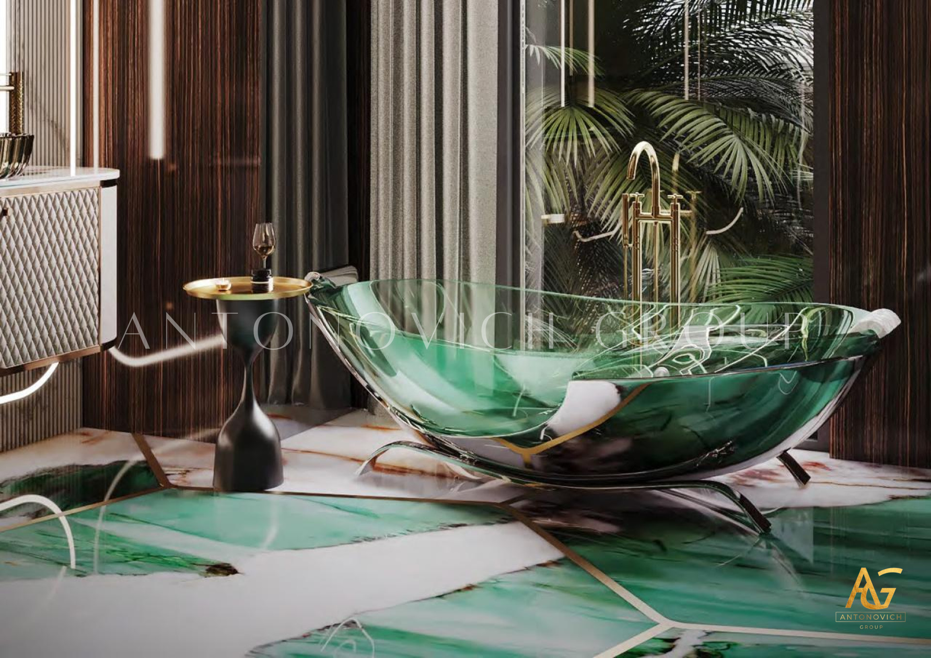You will definitely love the gold features of this luxury bathroom interior design. Bathrooms are normally dull and uninteresting, but this luxury bathroom interior design by Luxury Antonovich Design is so elegant and beautiful that it feels like youre in a mansion. The exquisite wall details are very stunning. With its gorgeous finish, the ambiance transports you to luxury. The usage of proper lighting gives the room a classic feel. It has a fantastic style and design. The interior design of a luxury bathroom is perfectly suited to it.