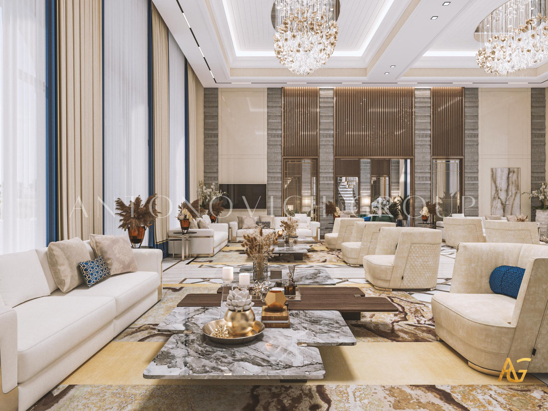 Antonovich Group is renowned for designing luxurious yet inviting family sitting rooms in Dubai, tailored to suit individual tastes and lifestyles. Their approach focuses on: