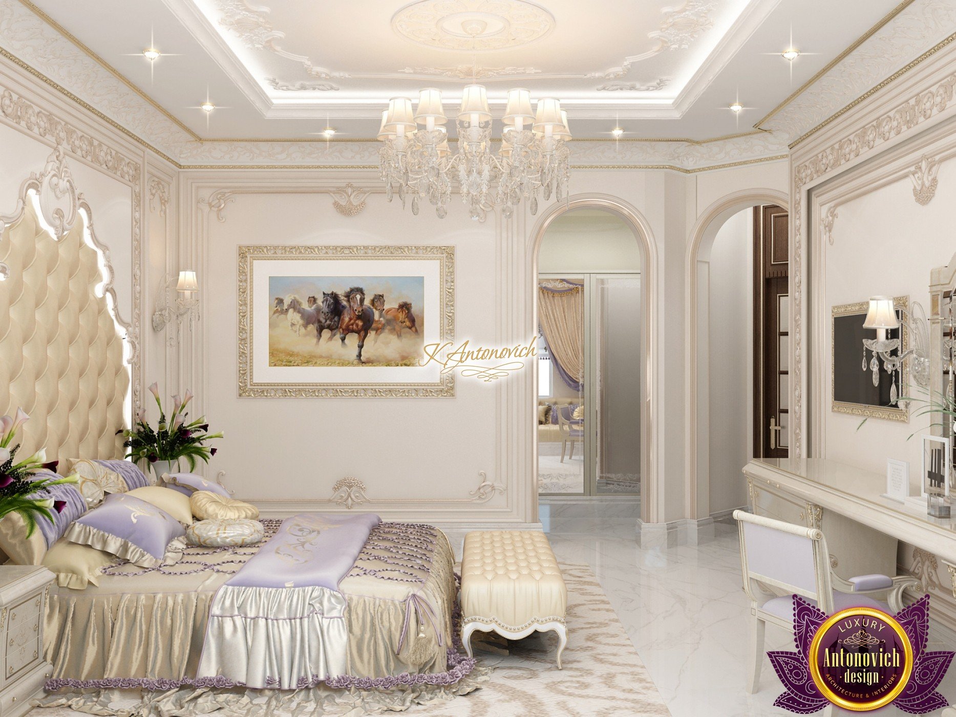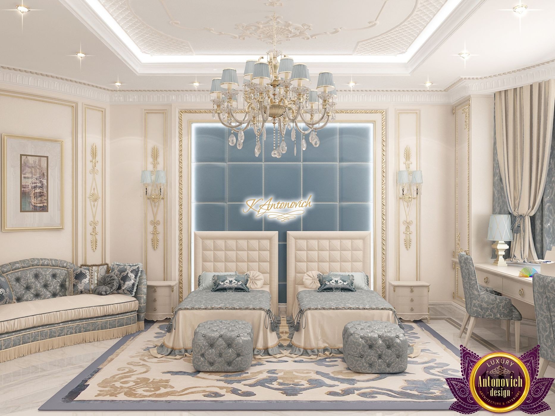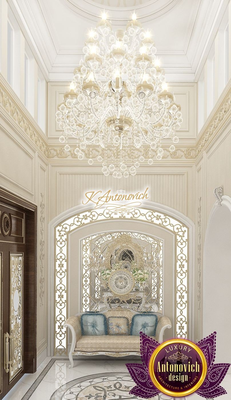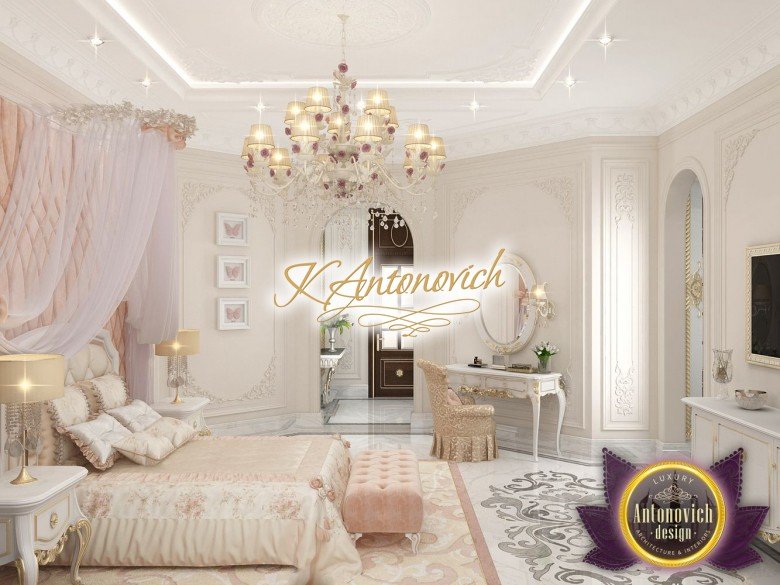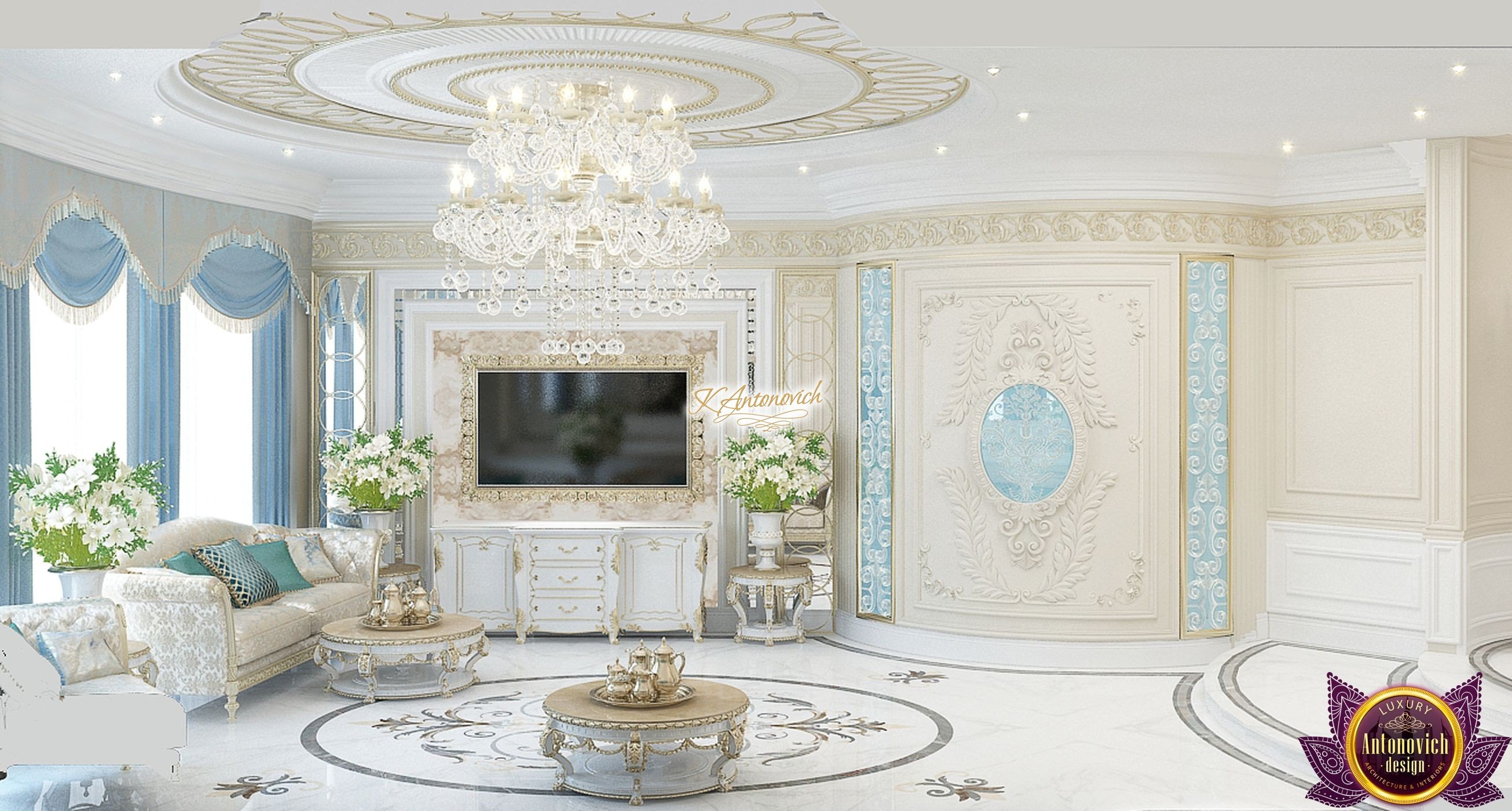 house interior has a very bright and easy nature. The first floor of the house - it is an open space, were very harmoniously combined living and dining hall. To visually zoning the interior, authors of the project proposed an original decor floors and ceiling. Floors made of white marble are multilevel. The dining room is elevated on a podium. And from the hall to the living room, you can go down by the semicircular marble steps. Blue curtains of silk became an excellent way to complement the interior expressiveness in the shining snow-white tones. The interior of the hall and dining room, interior designers offered an interesting way to expand the space. Such a method are frequently used in simple house plans. By using mirrors, which are opposite each other, it turns a beautiful illusion of infinity of the luxury interior. The luxury villa is full of romantic festive atmosphere and gives very pleasant emotions.