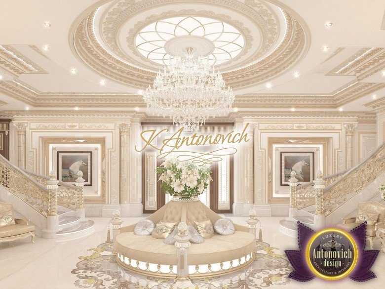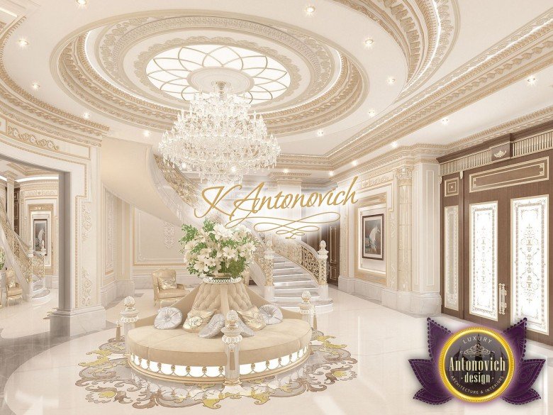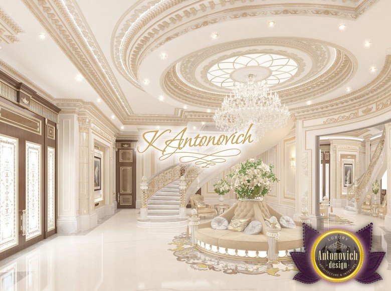 Each project of design studio in Dubai Luxury Antonovich Design - a luxurious interior story, that is dedicated to each individual family. And the interior of the villa became one of the new masterpieces of the design studio. As expected in the interior of the house, it all starts with the hall. house plans of that project have a number of architectural features. The interior design emphasizes the benefit advantages of architectural planning. A spacious hall decorated luxury double staircase made of natural marble.