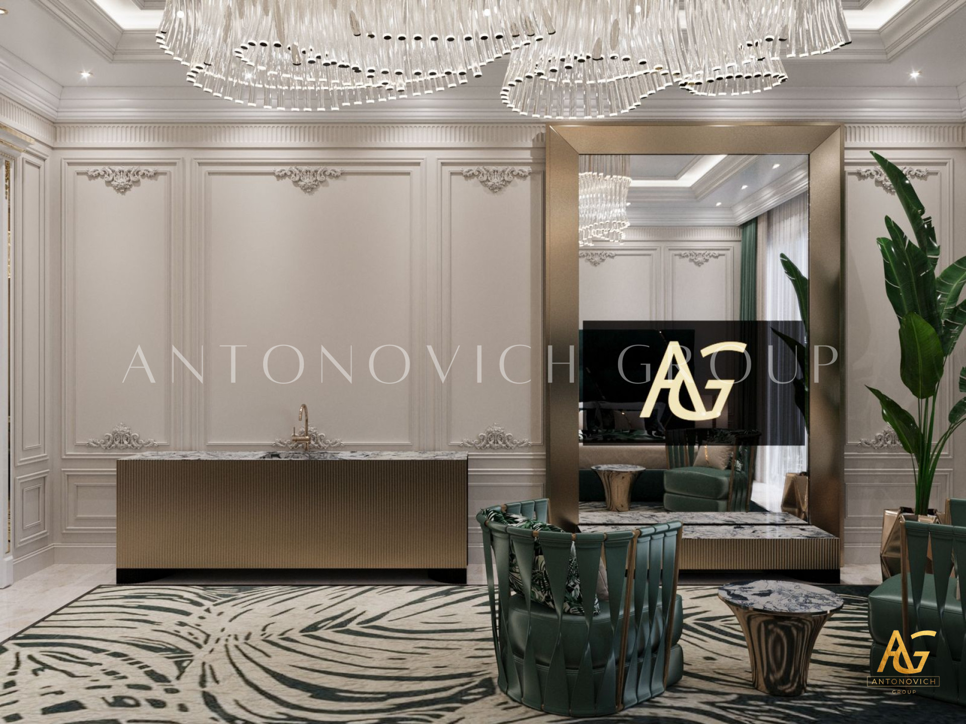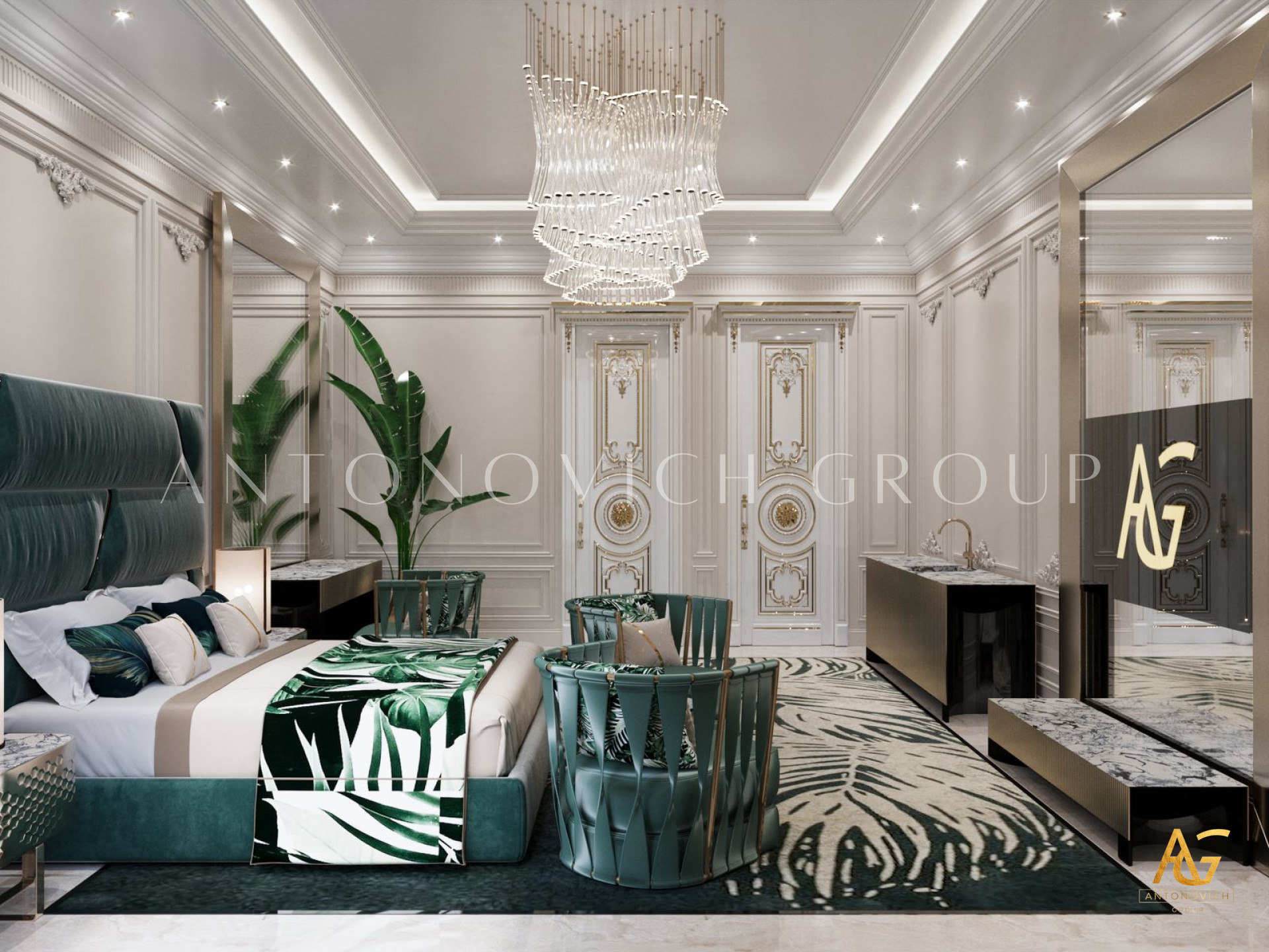 The beautiful color of this luxury bedroom interior design is very unique. It is rare to find a good shade of teal nowadays but the company of Luxury Antonovich Design and its talented interior designers was able to come up with such a nice theme that is perfectly designed to suit the needs of a rich lifestyle. The luxury and beautiful bedroom interior design also has amazing furniture all around the room. The huge chandelier, beautiful bed, and amazing bed headboard are just some of the many beautiful high-quality highlights of this luxury bedroom interior design.