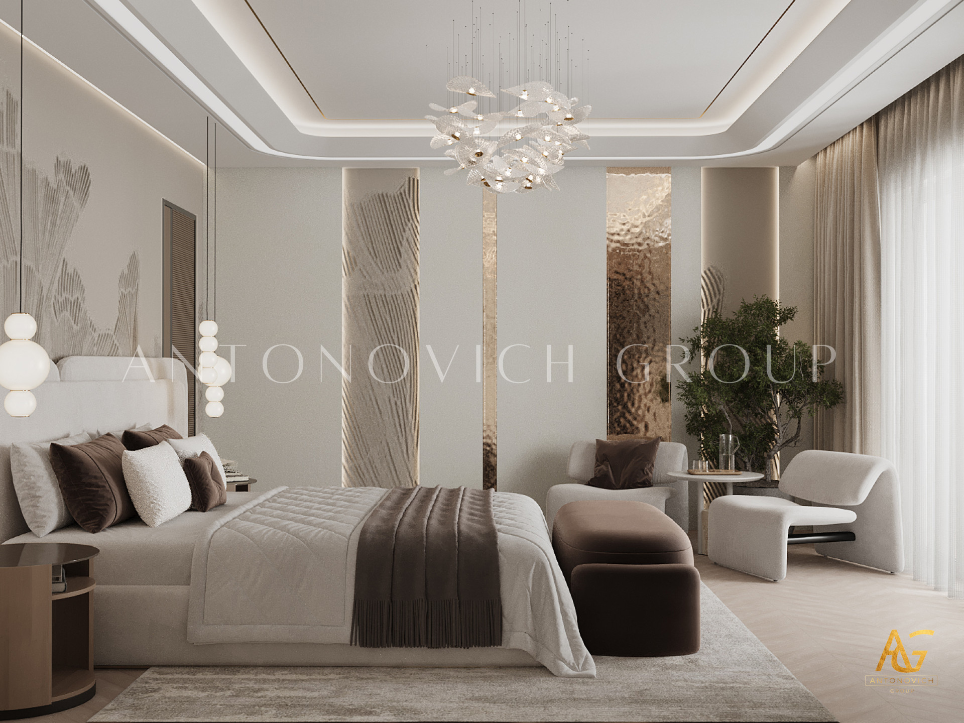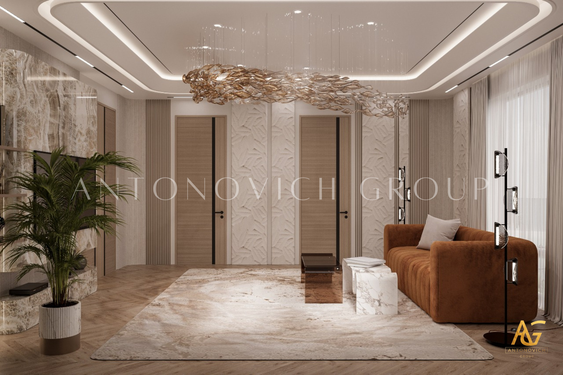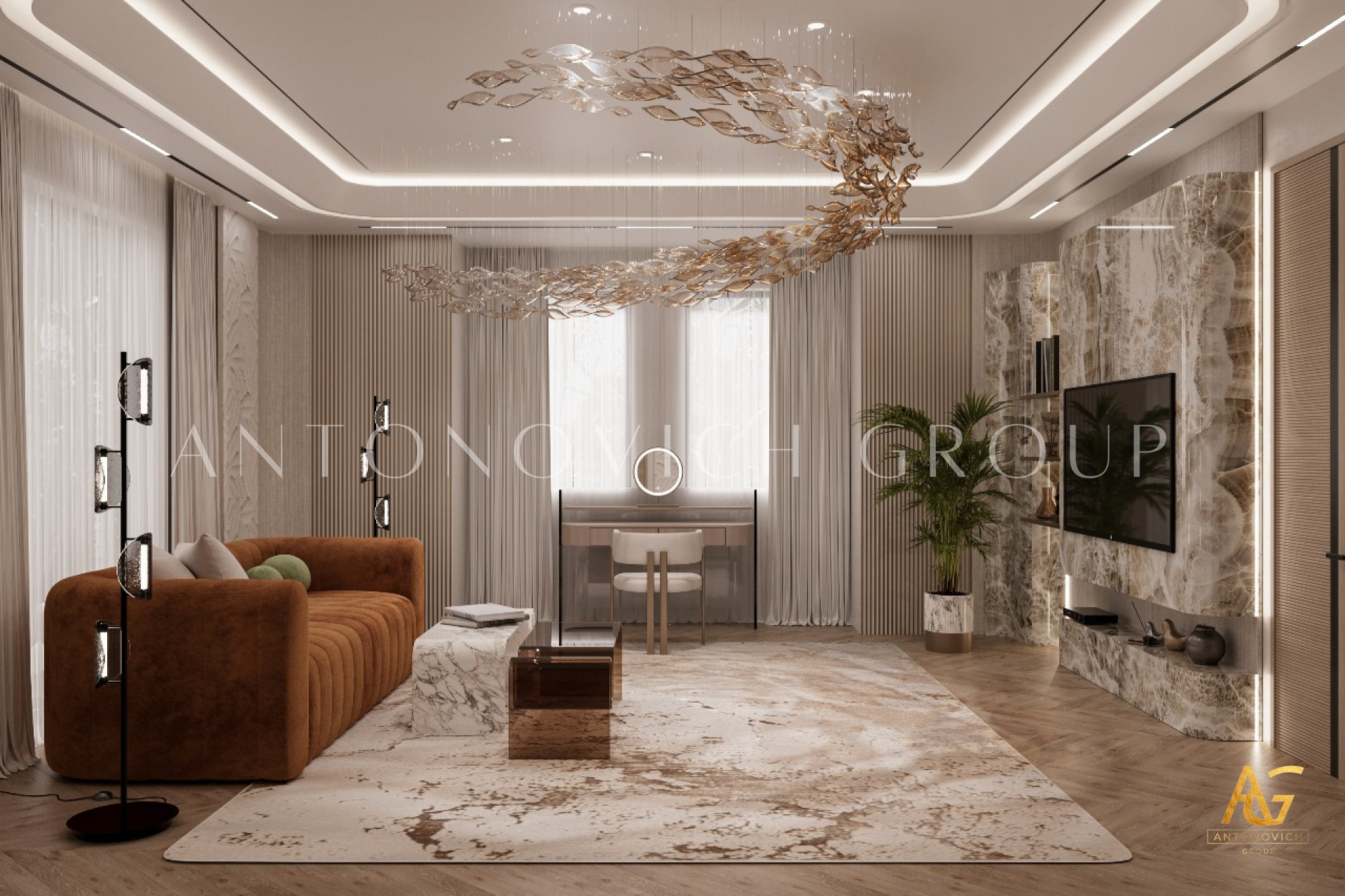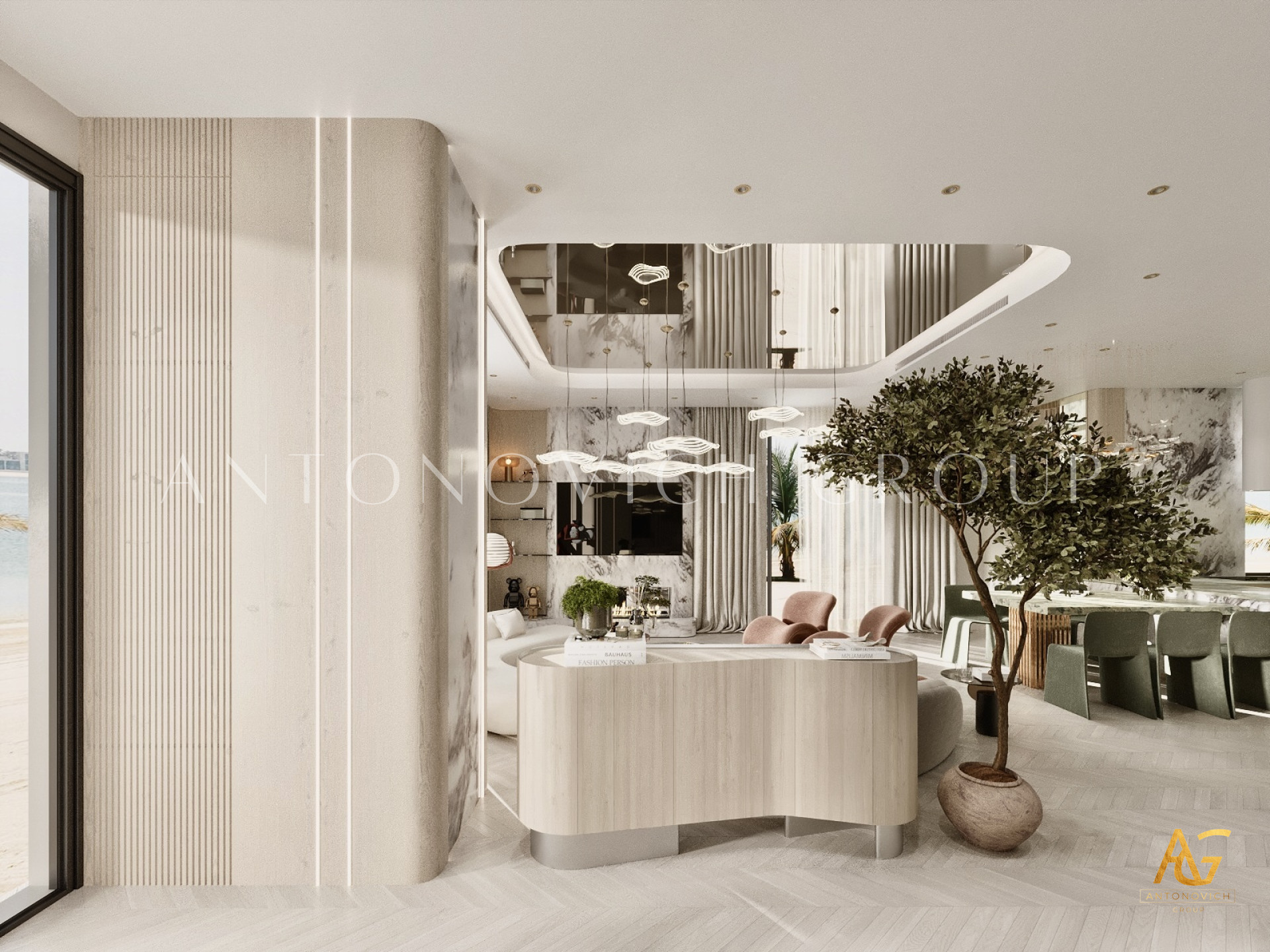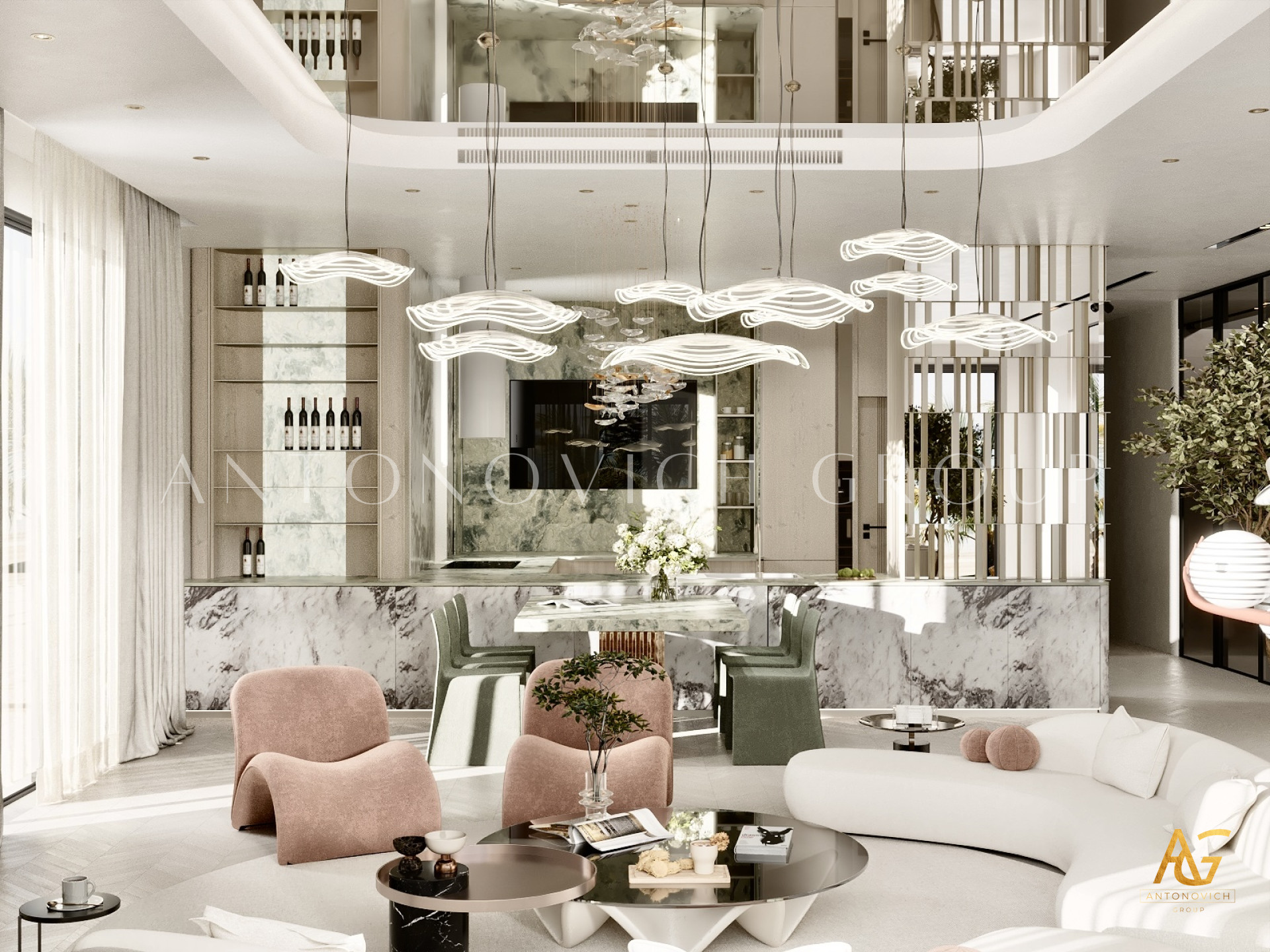 Sobha Hartland in Dubai has become one of the city’s most sought-after residential communities, known for its premium lifestyle, contemporary architecture, and serene surroundings. Within this prestigious neighborhood, Antonovich Group has once again showcased its expertise through the interior design and fit-out execution of a luxury villa, setting a new benchmark for elegance and sophistication. The villa’s interiors were conceptualized to reflect a balance of modern luxury and functional comfort, tailored to meet te client’s refined lifestyle. Antonovich Group’s team of designers developed a comprehensive concept, focusing on spatial harmony, luxurious finishes, and exclusive furniture designs.