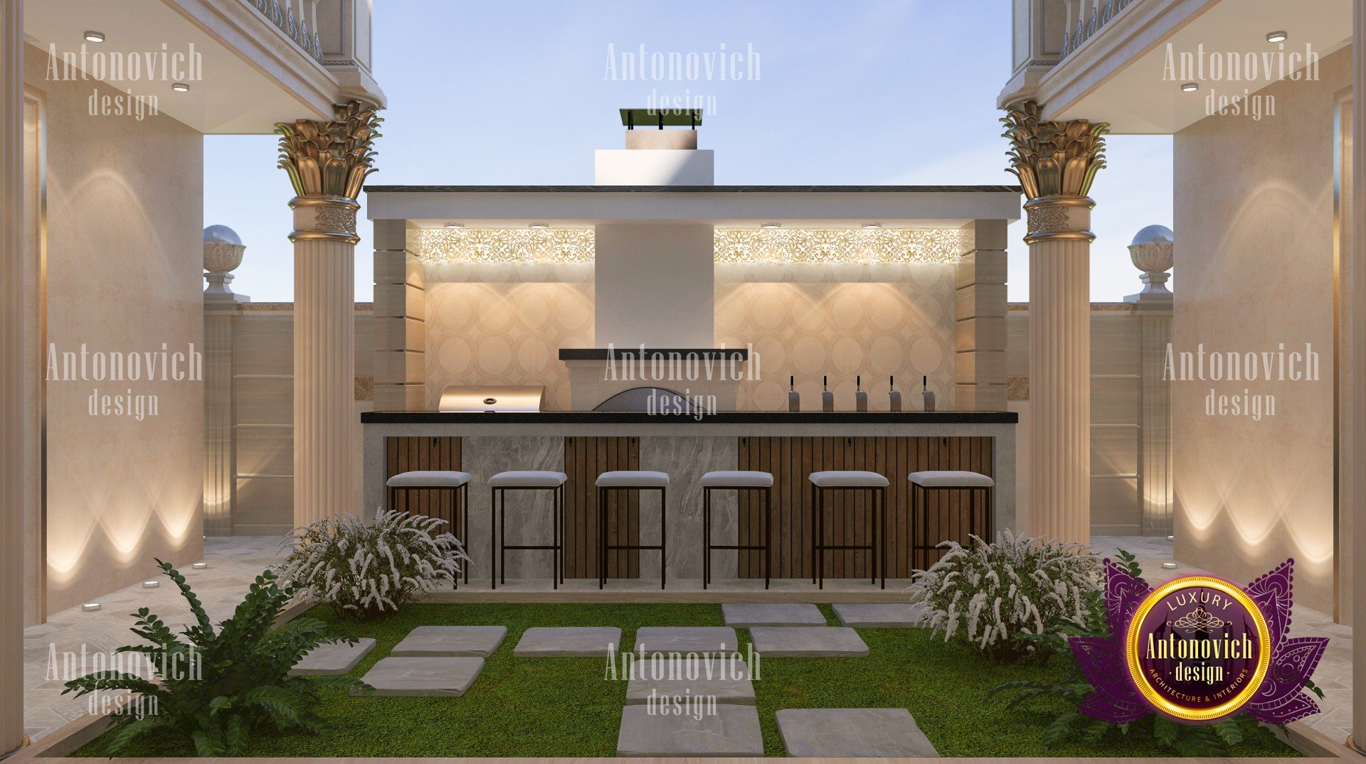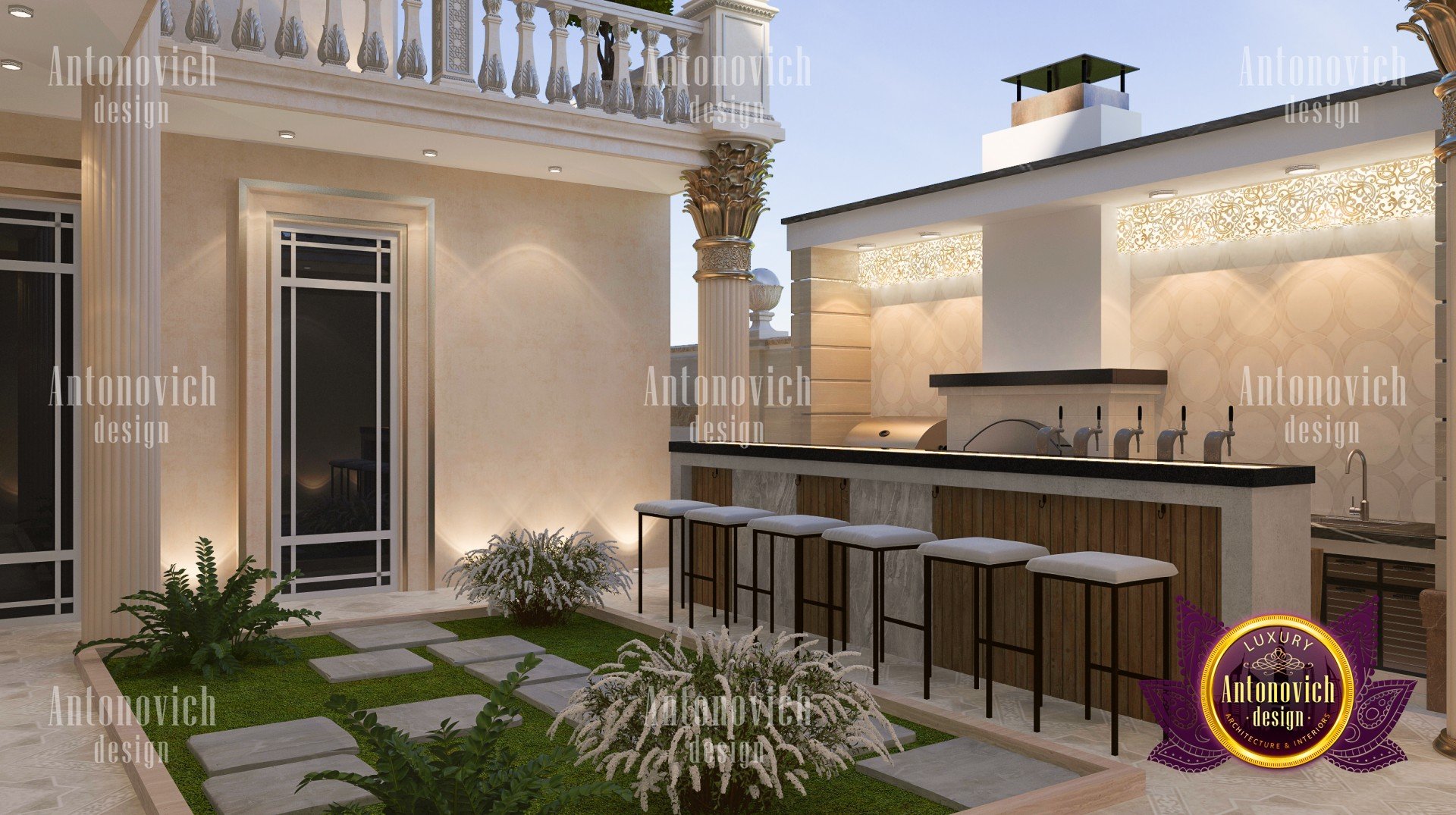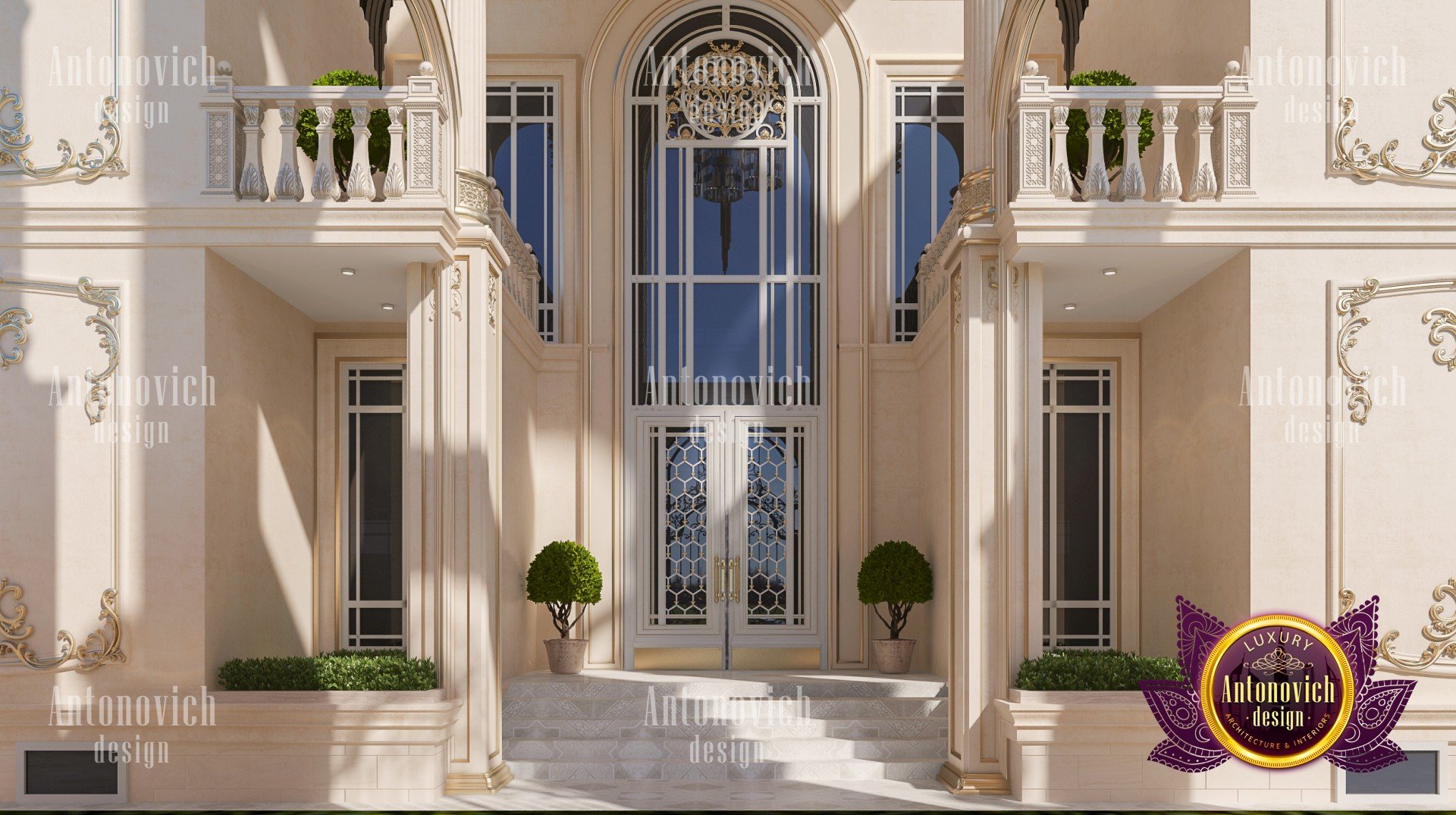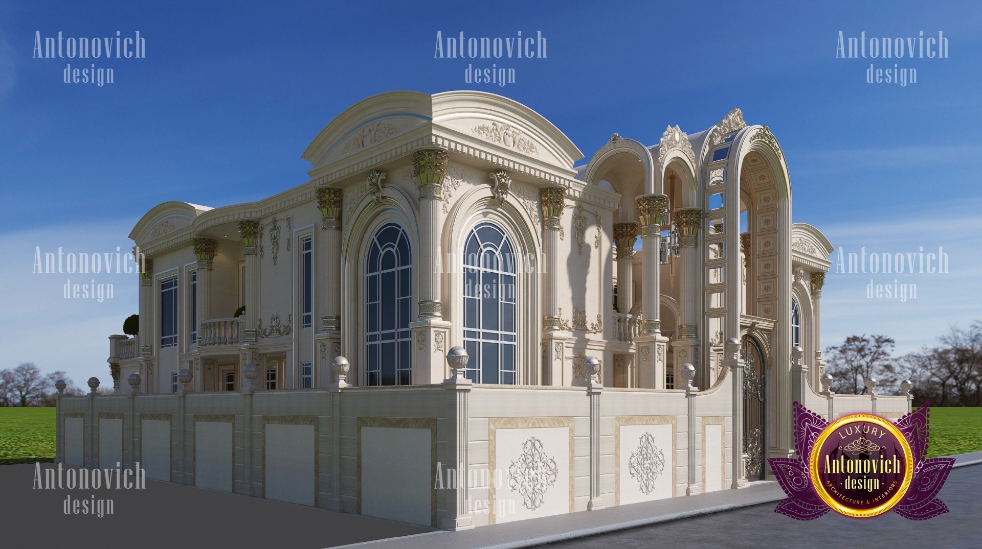 Contemporary architecture in each country assumes its own characteristics, in accordance with the culture and fashion trends. This villa exterior in Abuja, Nigeria reflects a spirit of colonial classics. Architectural designs by Luxury Antonovich Design Studio becomes a reflection of global trends. And a classic style is still the best way to emphasize aristocracy of the house owners. This architectural design became a creation of a modern palace with a luxurious landscaping. An expressiveness of the building is based on a harmonious combination of architectural elements, as well as a stylish contrast of a black roof and light facades. The exterior was decorated with pilasters, moldings, elegant columns, balustrades, and other charming details, just In the best traditions of the classic style with elements of Baroque. Entrance portals of the building are decorated with open terraces with marble staircases. The architecture design impresses with luxurious forms, composition, expressiveness and modern luxury. A laconic continuation of the exquisite exterior is the landscaping. Small architectural forms and sculptures became a big part of the landscape design. Luxury gazebos near artificial ponds are designed in the same style as the building itself. The main part of the building exterior is an entrance gate. This part of the project has a special meaning, setting the tone of respectability and gentility.