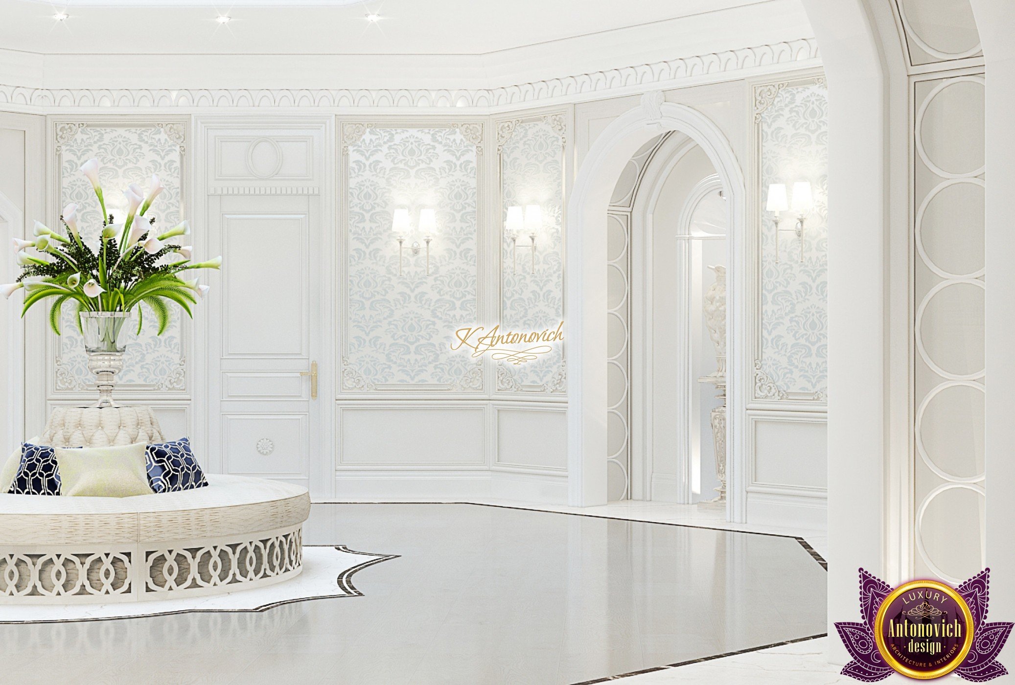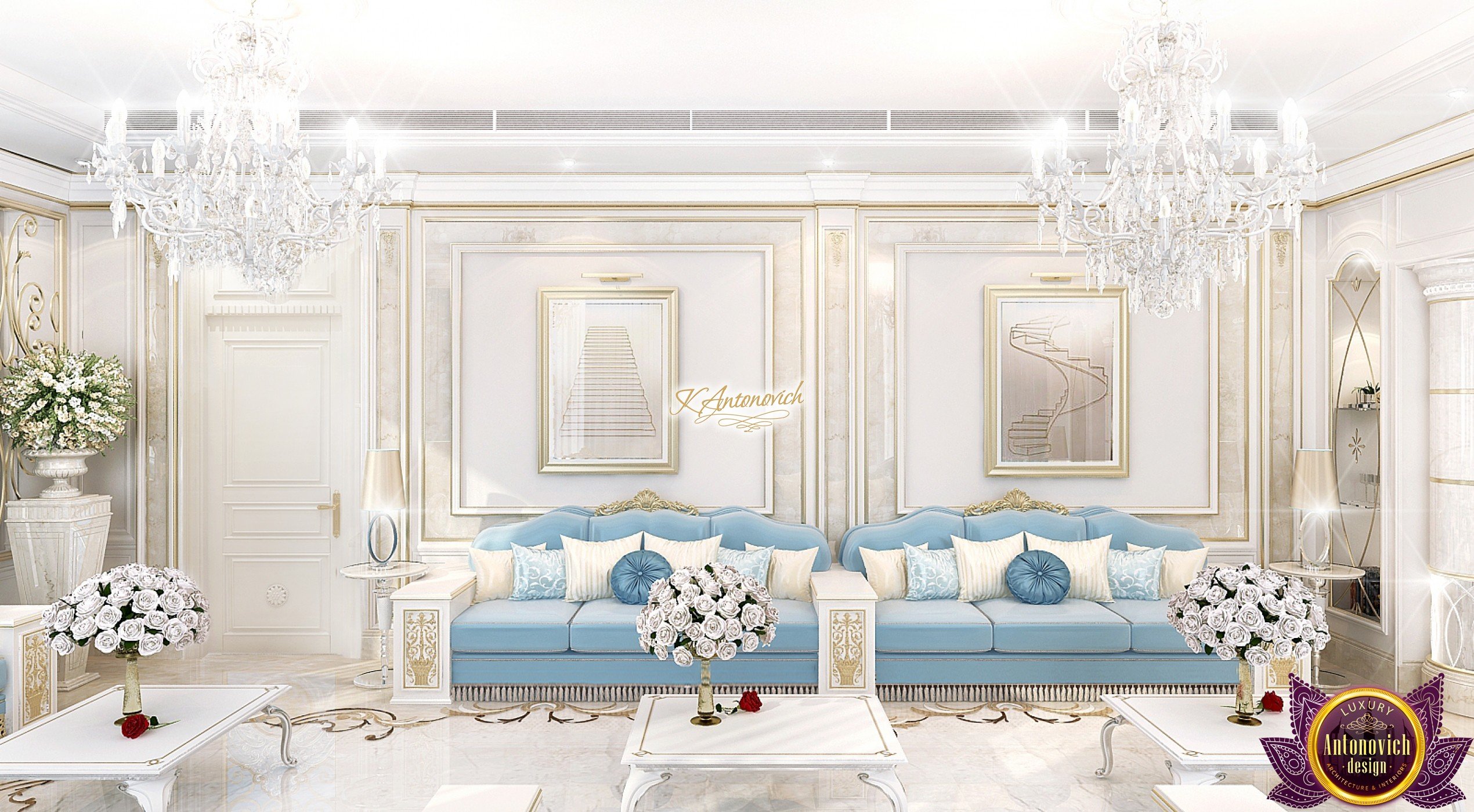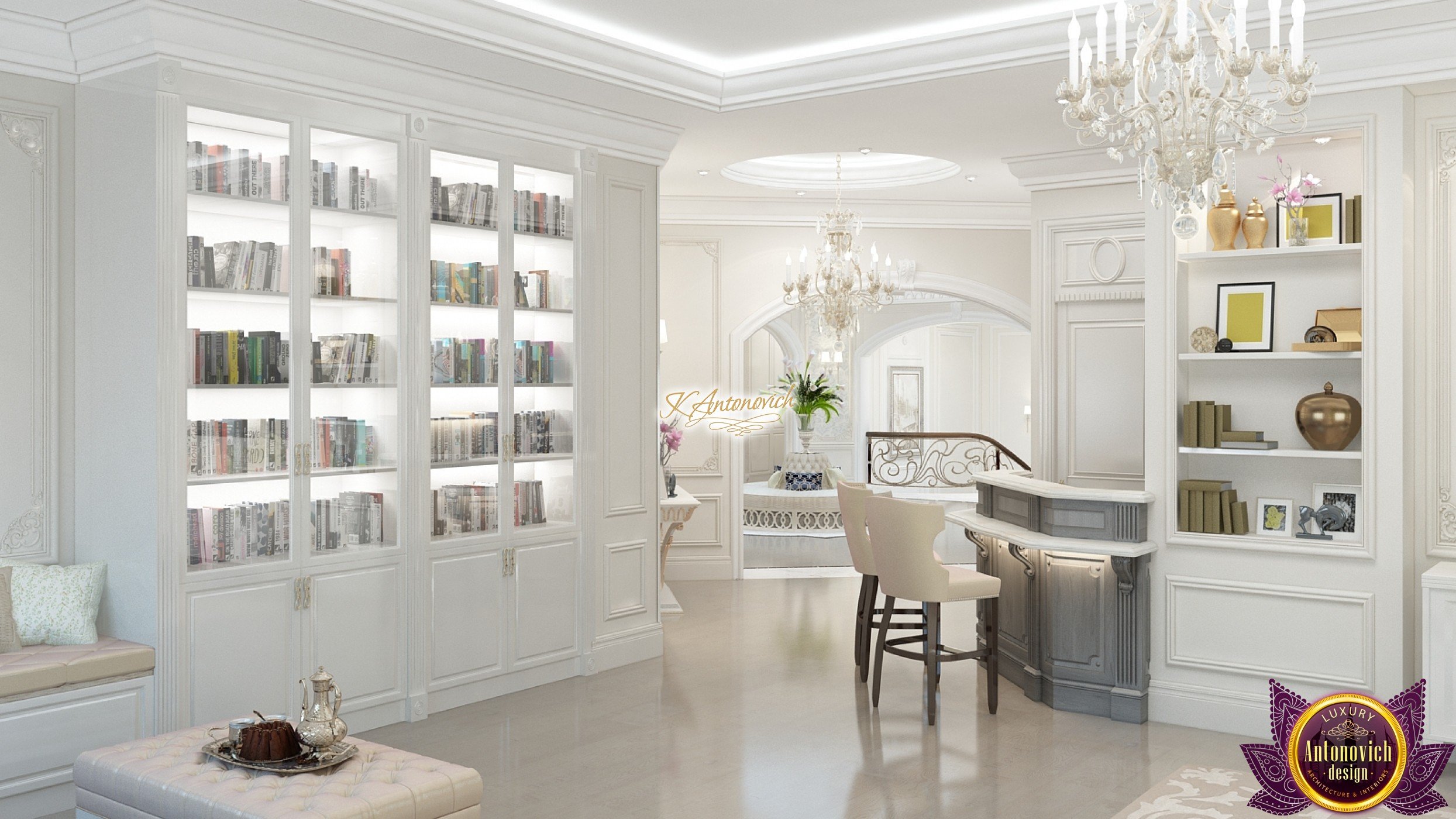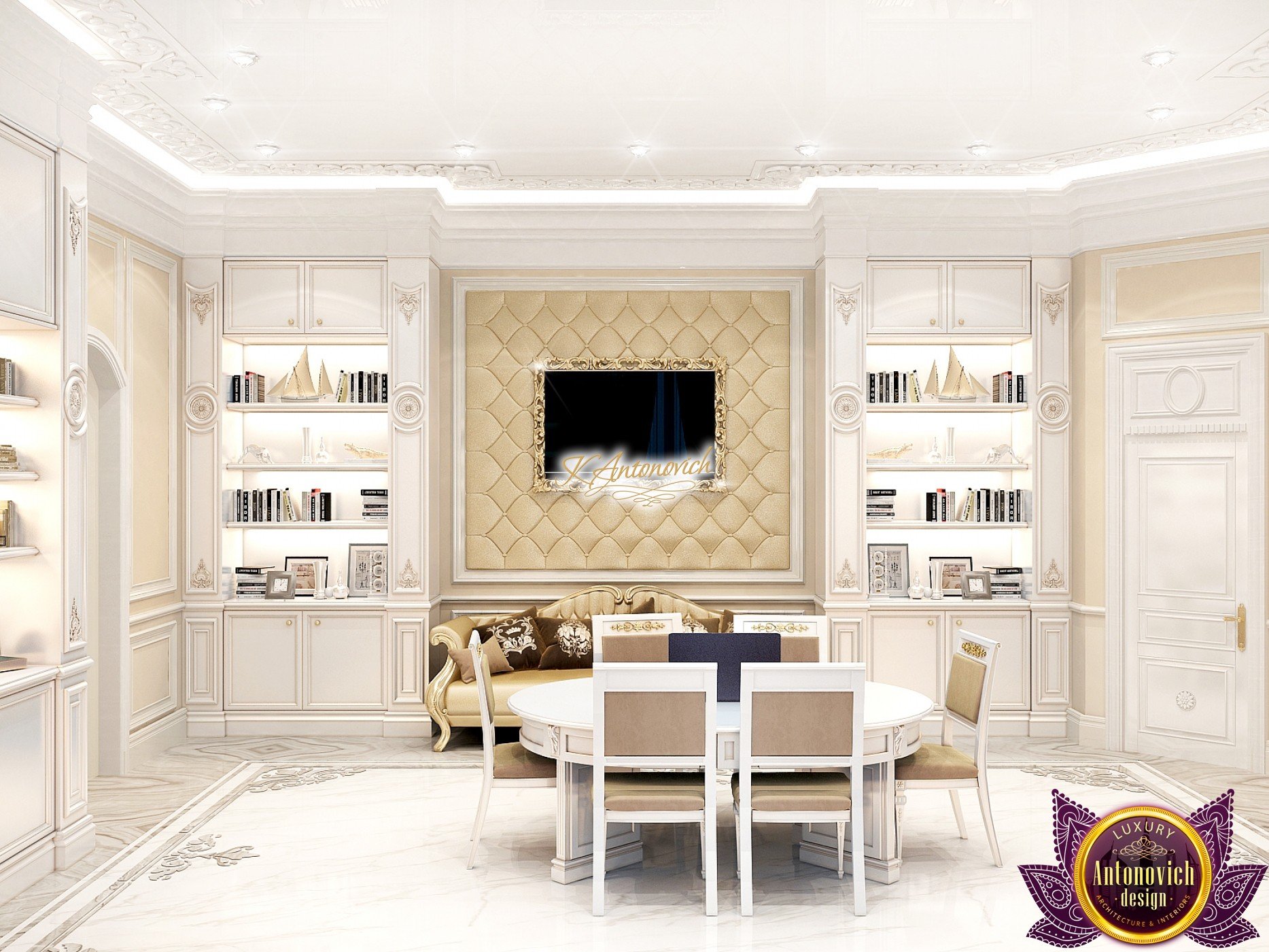 This modern villa design in Abu Dhabi is an embodiment of a modern luxury palace. Our designers created this royal palace designed for aristocrats at Luxury Antonovich Design Studio. The entrance to the house is decorated with a gorgeous stair portal, and the walkway of this welcoming palace creates strong light and a pleasant shade of warmth.