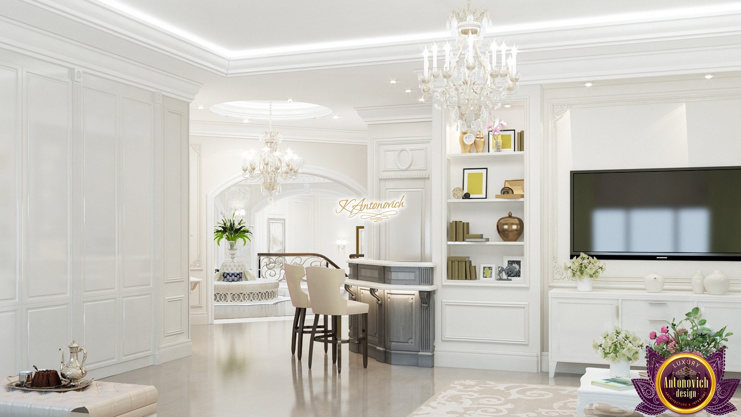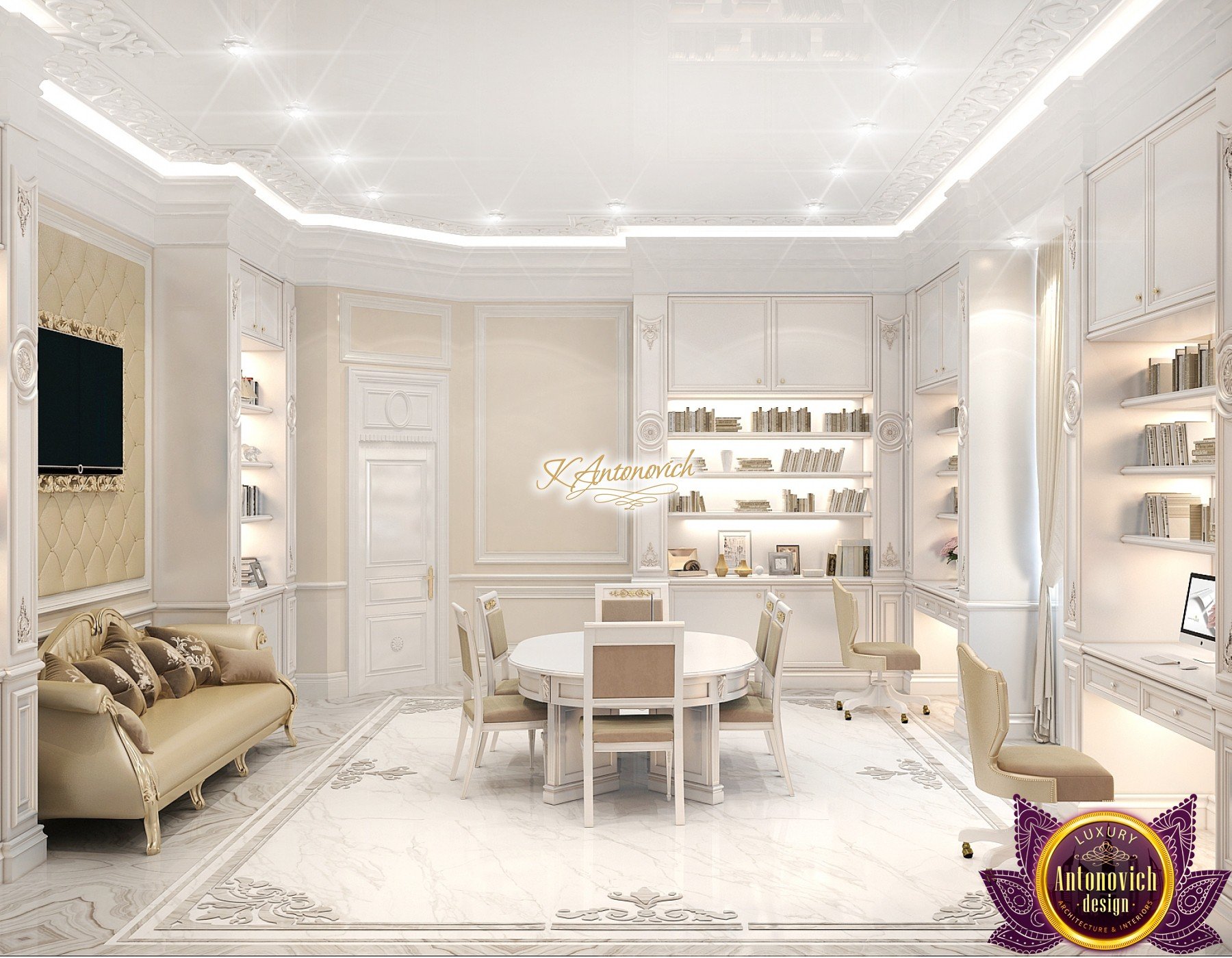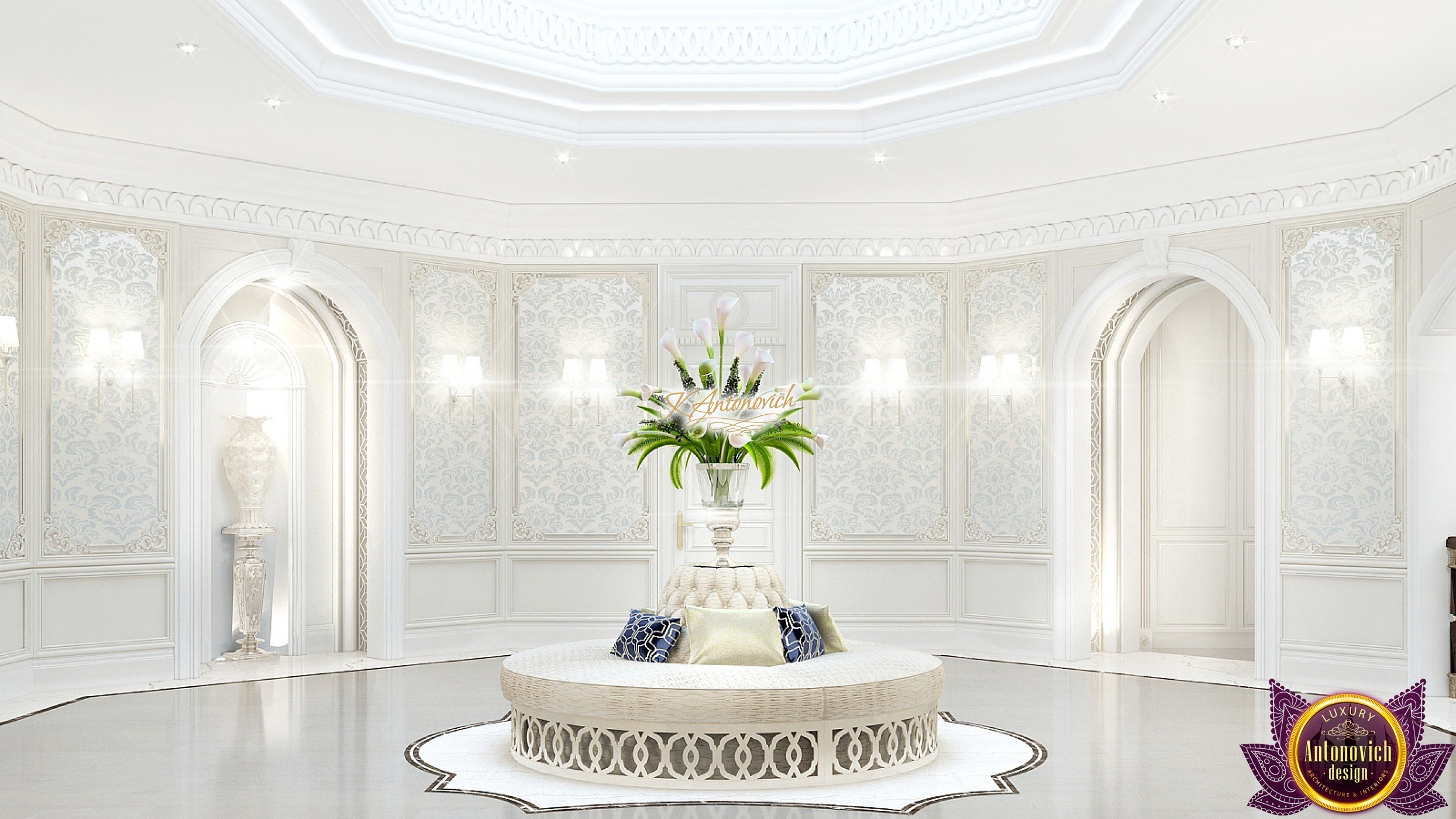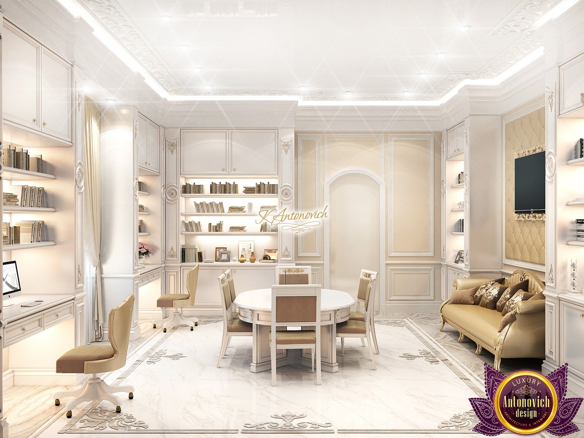 This modern villa design in Abu Dhabi is an embodiment of a modern luxury palace. Our designers created this royal palace designed for aristocrats at Luxury Antonovich Design Studio. The entrance to the house is decorated with a gorgeous stair portal, and the walkway of this welcoming palace creates strong light and a pleasant shade of warmth.