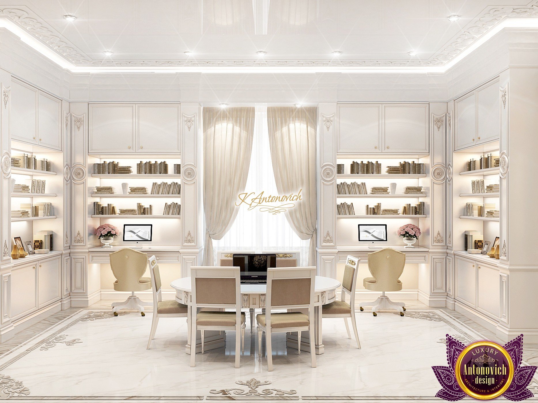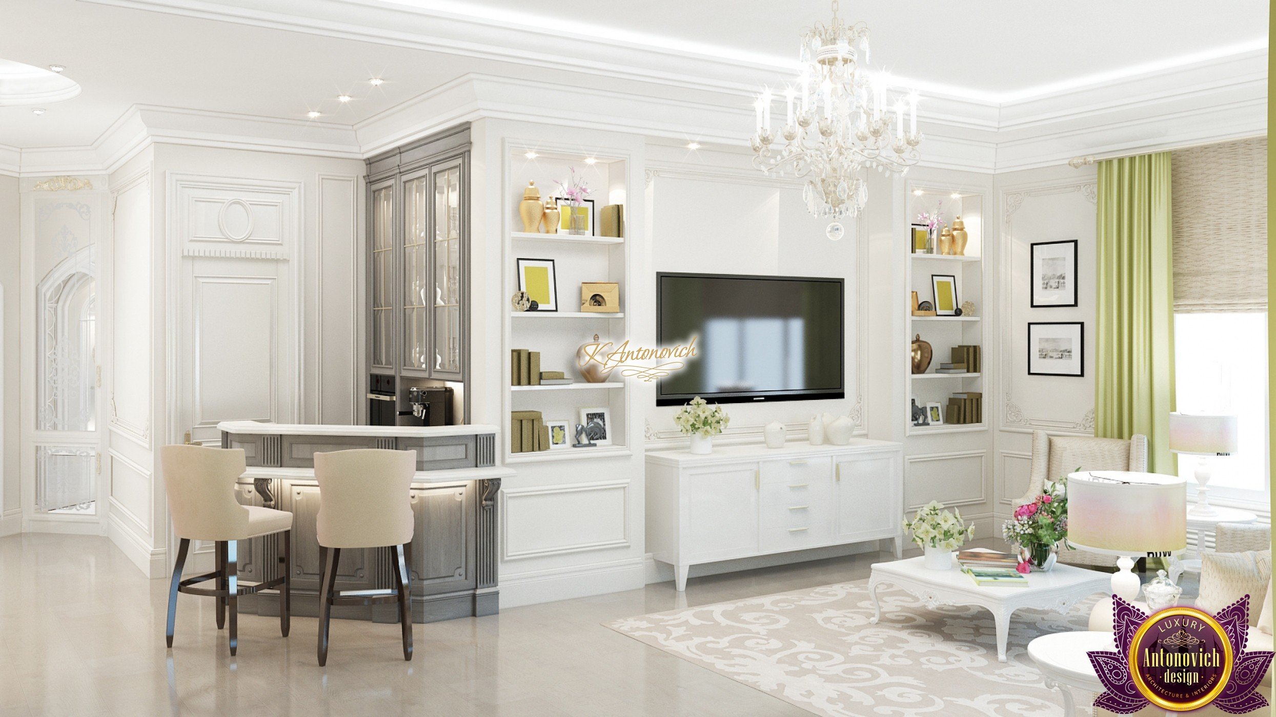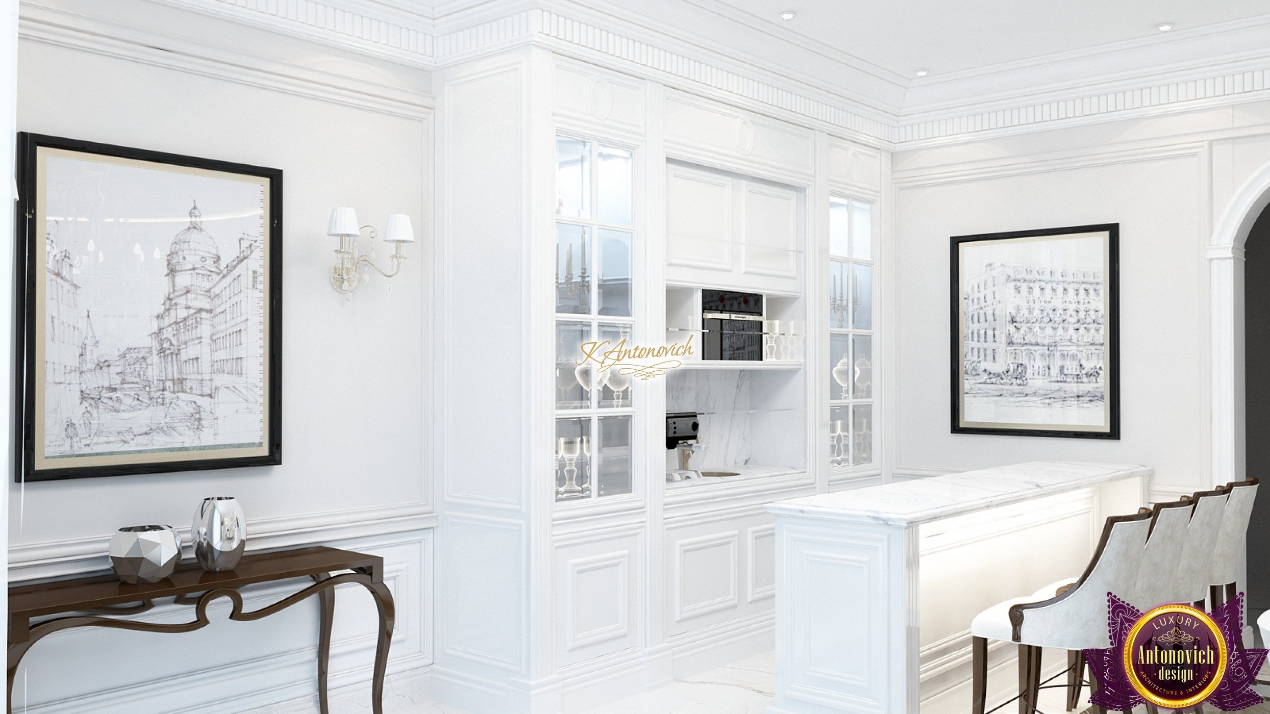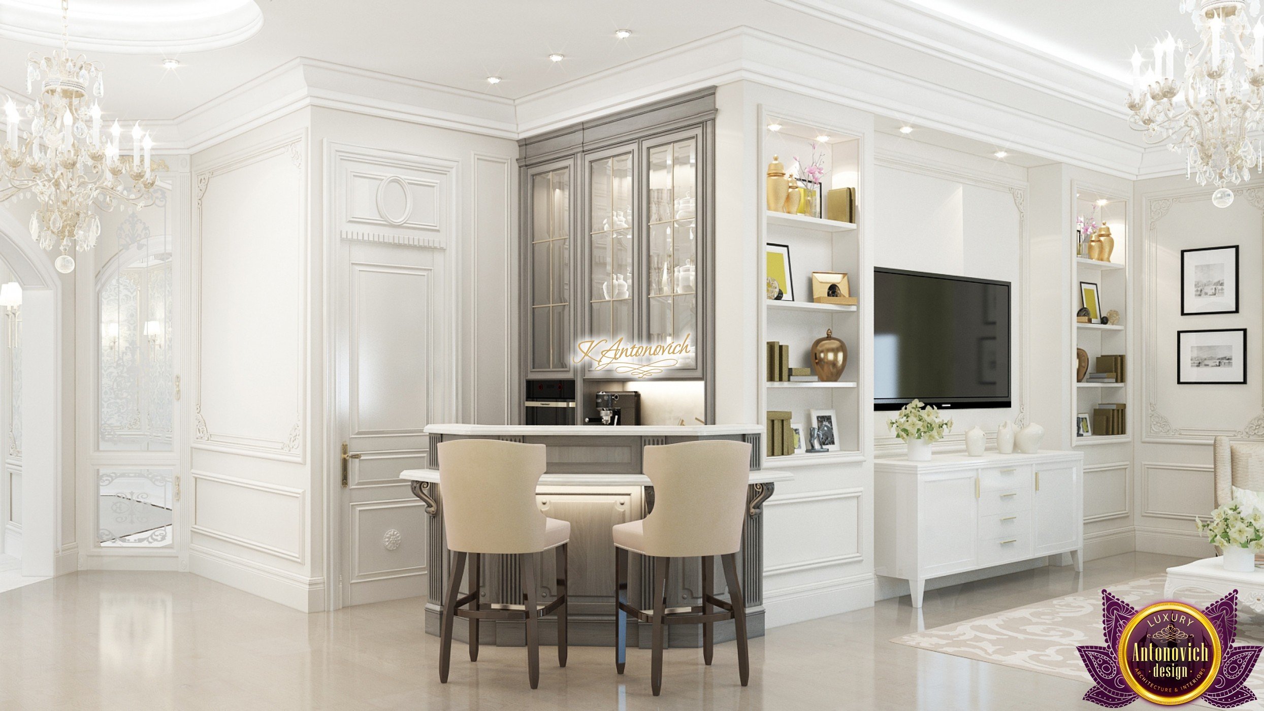 This modern villa design in Abu Dhabi is an embodiment of a modern luxury palace. Our designers created this royal palace designed for aristocrats at Luxury Antonovich Design Studio. The entrance to the house is decorated with a gorgeous stair portal, and the walkway of this welcoming palace creates strong light and a pleasant shade of warmth.