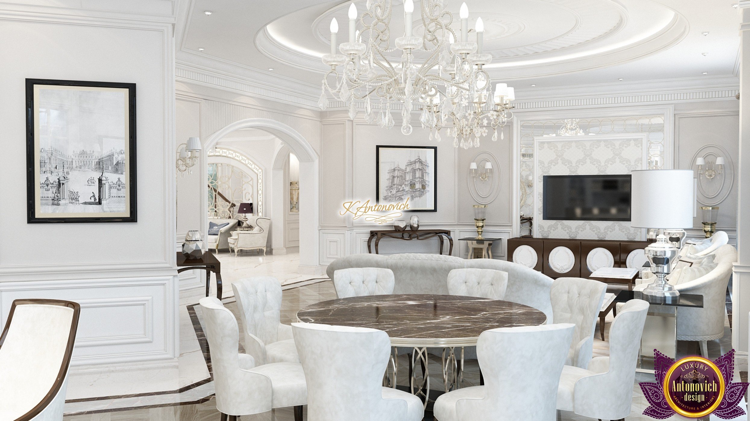 That wonderful feeling of admiration fills you at the doorstep and continues in all the other rooms of this unbelievable villa in Abu Dhabi. This project is a combination of the classic, modern style, and a touch of the oriental fashion. A spacious living room and a large dining room stress the warmth and hospitality of the residents.