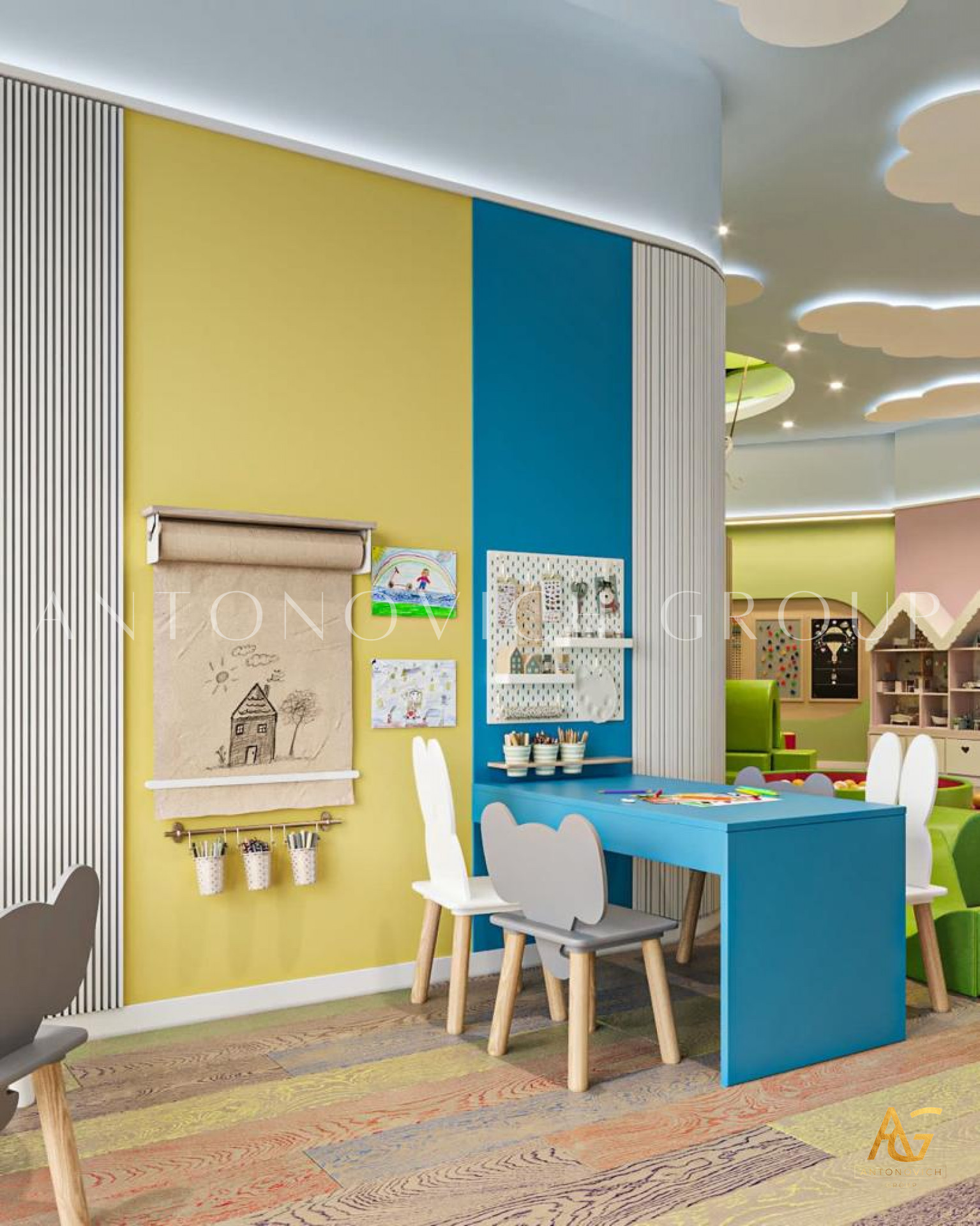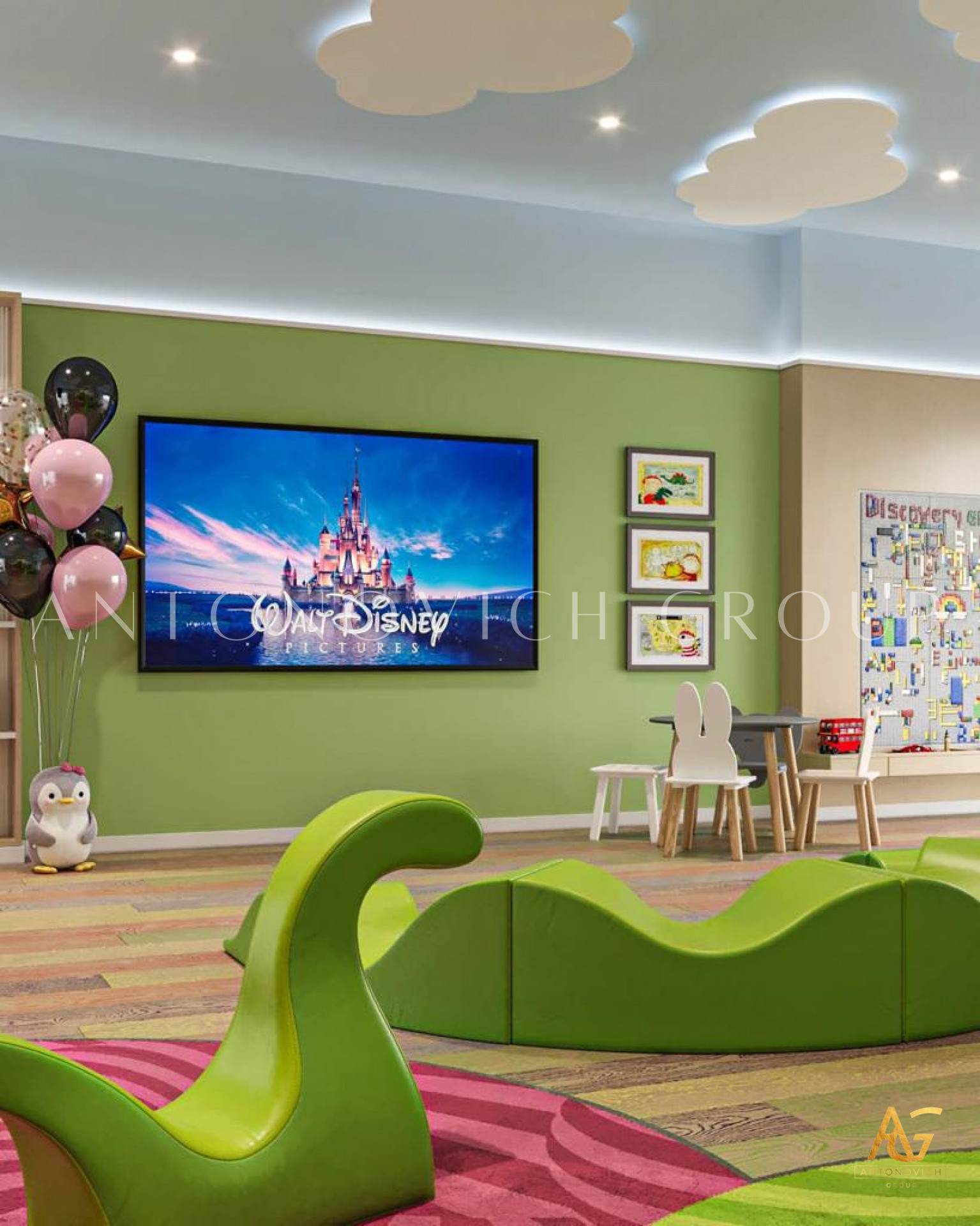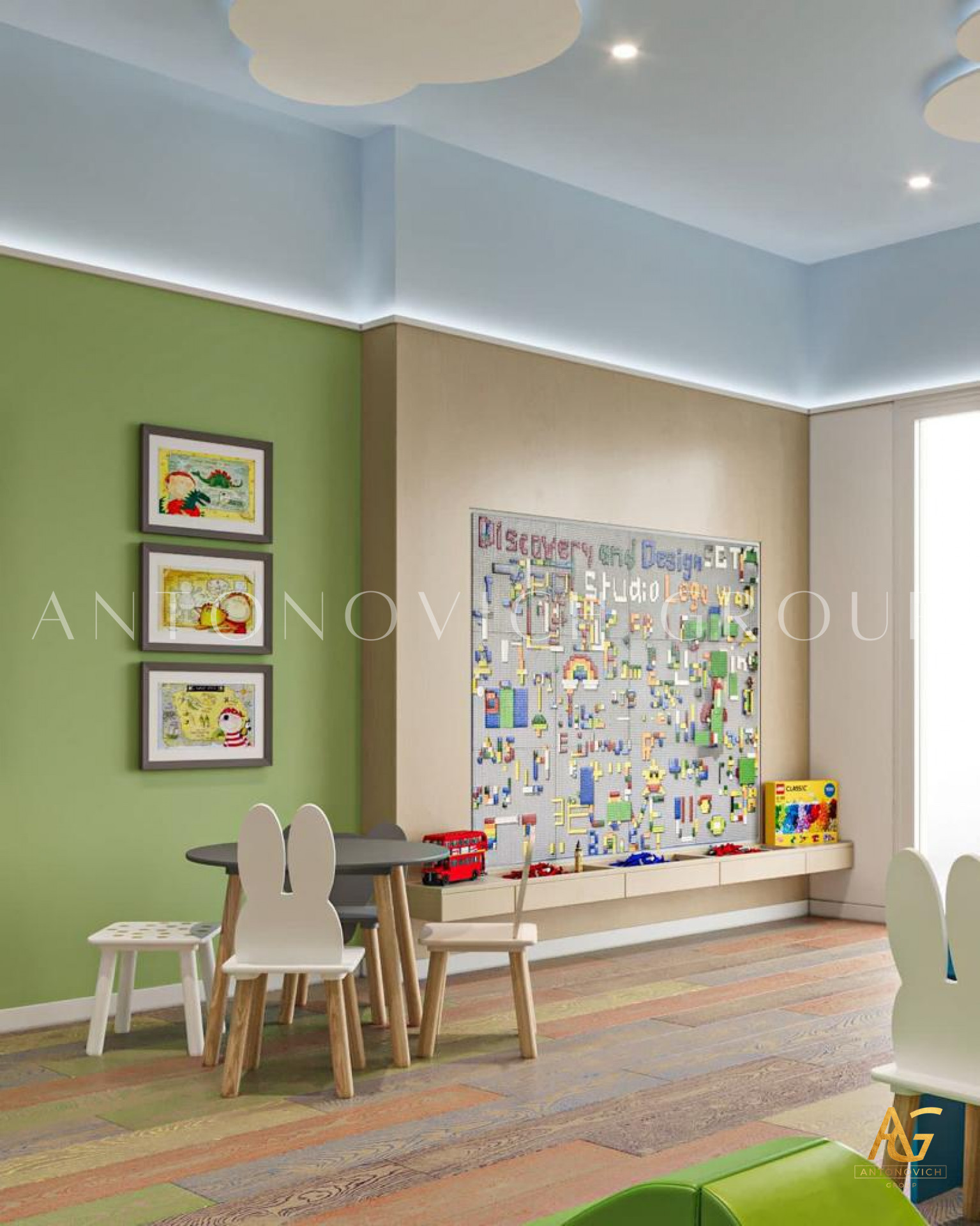 From the initial sketches to the final brushstroke, Antonovich Group has embarked on a journey to create more than just a playroom; they've designed a wonderland. Every corner is thoughtfully curated to ignite the spark of creativity, transporting children to a realm where their imaginations can take flight.