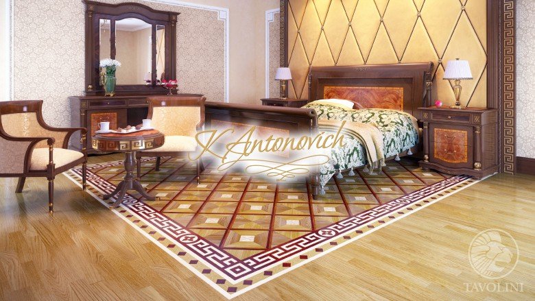 A special role parquet flooring plays. We represent the worlds leading companies of the production of parquet flooring. And for luxury interior designs the worlds leading factories create luxury artistic parquet flooring according to sketches of our designers.