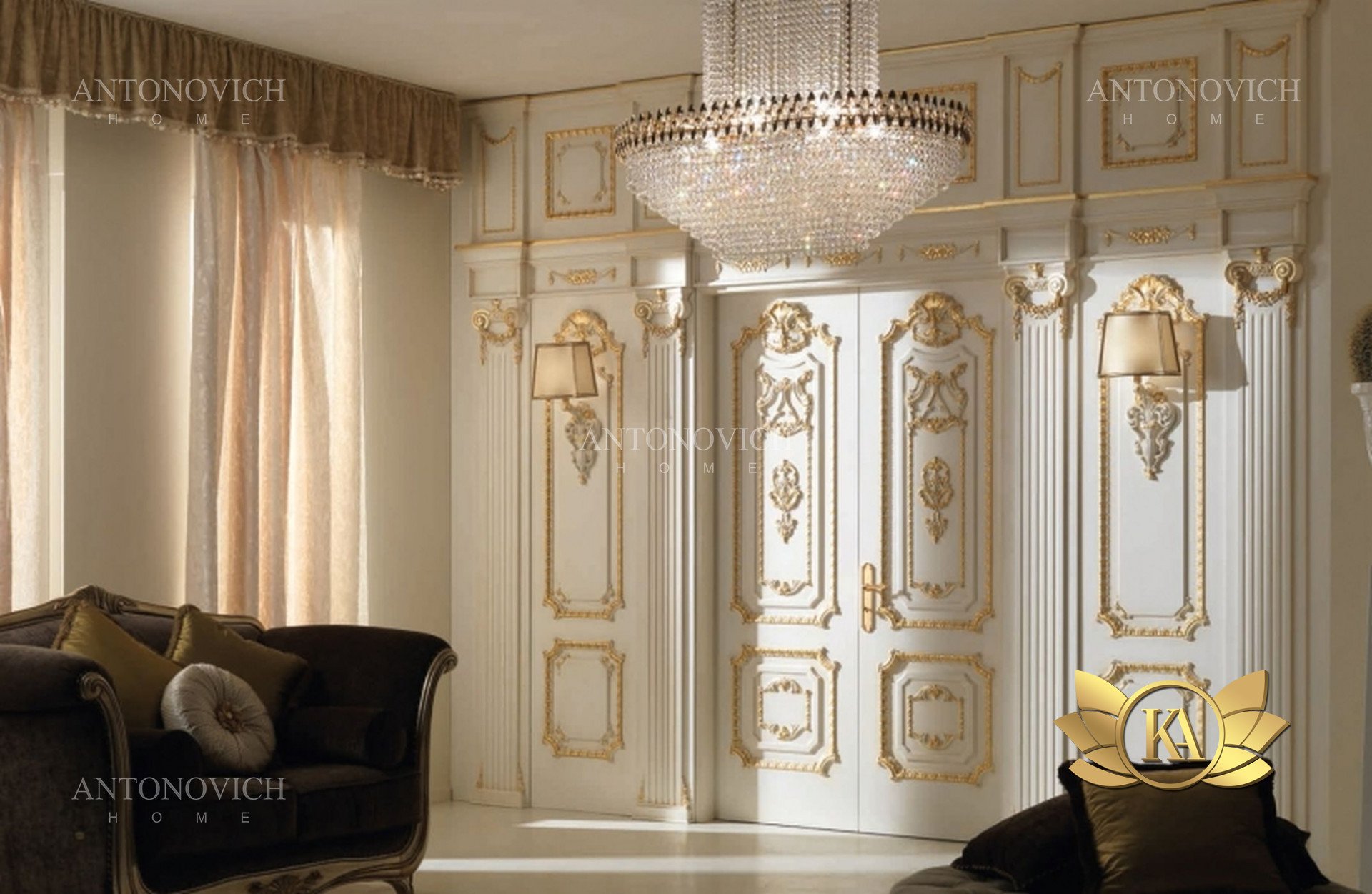 Exclusive wooden door models from Luxury Antonovich Home are flawless in everything. They are made exclusively of natural wood, have the highest performance characteristics and give a luxurious design that you can not resist. Stylish wooden interior doors will tell about your taste, well-being, adding a pleasant impression of your beautiful interior. We offer exclusive original design solutions for any client. Wooden doors of elite class from Luxury Antonovich Design are made only from high-quality wooden material, thoroughly dried in a special way, using high-quality fittings. We make all the necessary measurements, take into account the configuration of the room, carefully select accessories and fasteners. You can order projects of any complexity from us both for new construction and for already existing interiors.